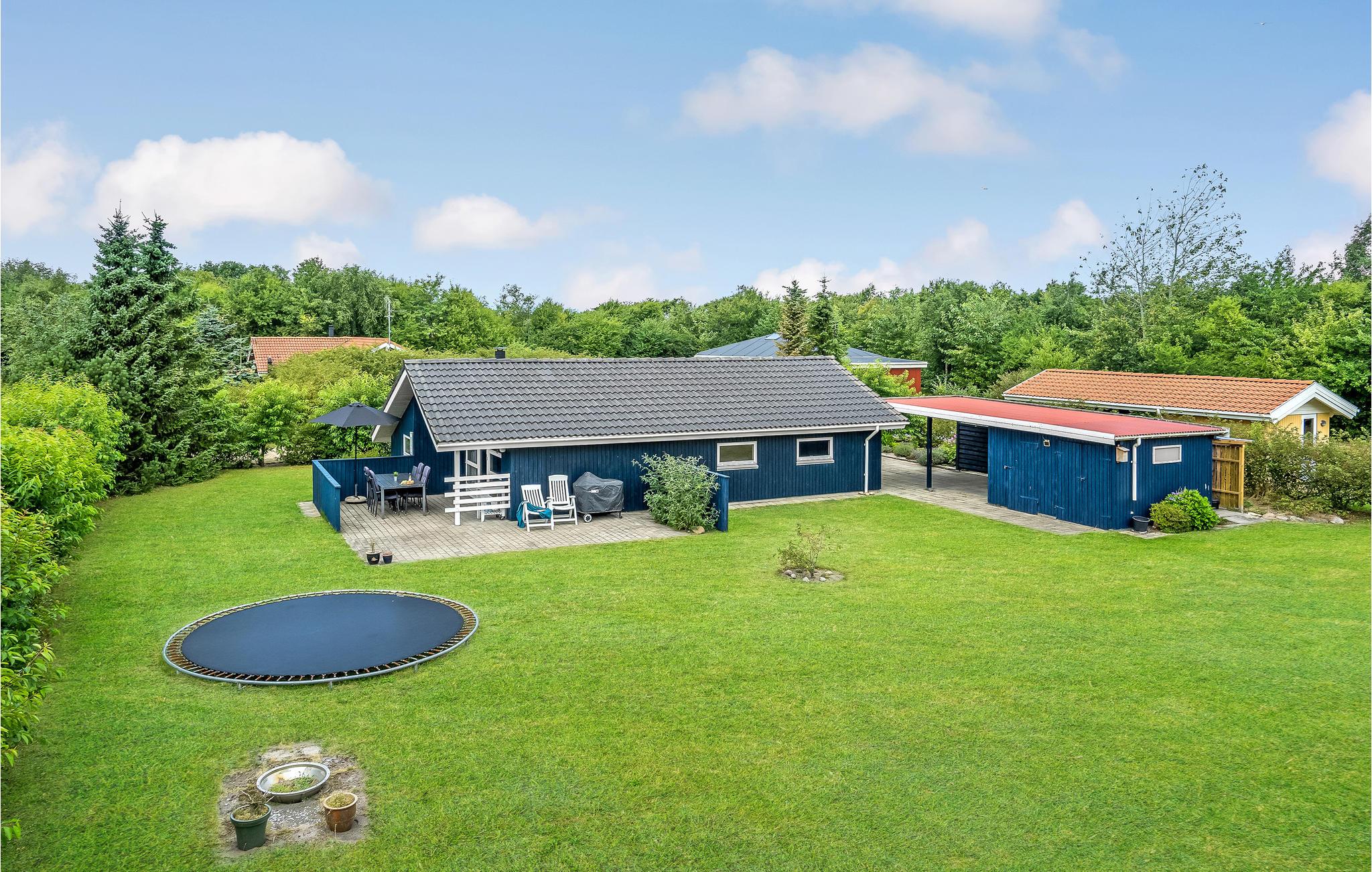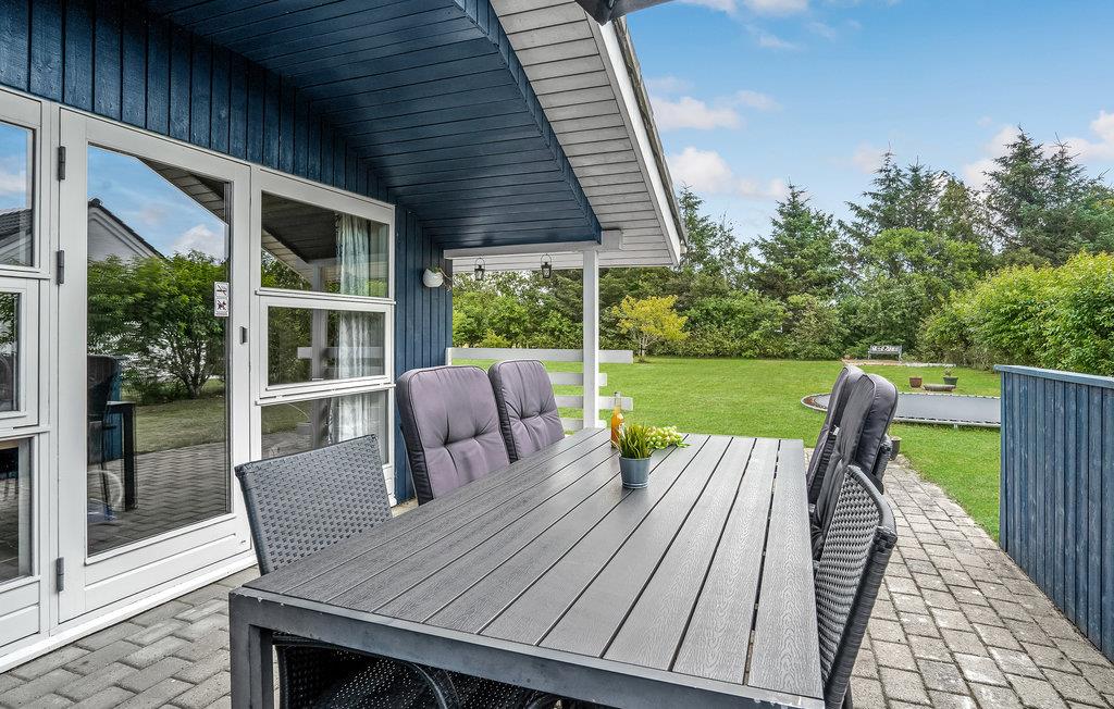 Til huset hører en dejlig og delvist overdækket terrasse, hvor I kan nyde jeres feriemåltider, sole jer eller læse en god bog, mens børnene løber rundt og leger på den store græsplæne eller hopper på trampolinen (på eget ansvar).