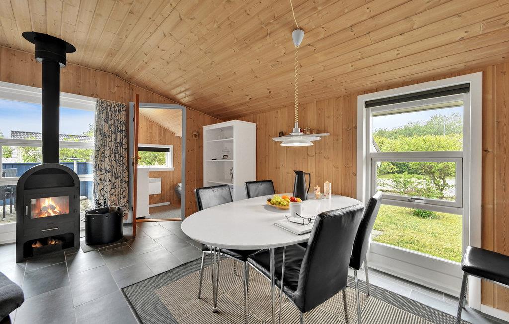 Dette hyggelige feriehus giver jer de perfekte rammer for en uforglemmelig familieferie ved Ringkøbing Fjord. Huset er meget hyggeligt takket være kombinationen af flisegulve og trævægge- og lofter. Den hyggelige opholds- og spisestue er husets hjerte og stedet, hvor I kommer til at tilbringe rigtig meget kvalitetstid sammen - uanset om I ser en god film sammen på fladskærmen, spiller kort eller brætspil eller bare hyggesnakker foran brændeovnen efter en frisk gåtur ved fjorden.