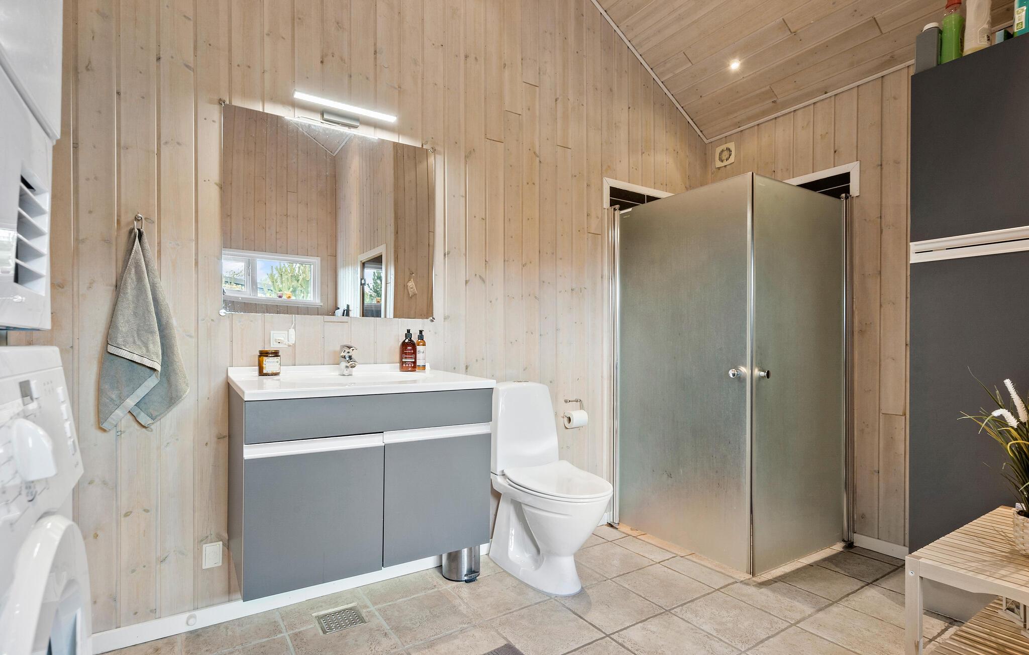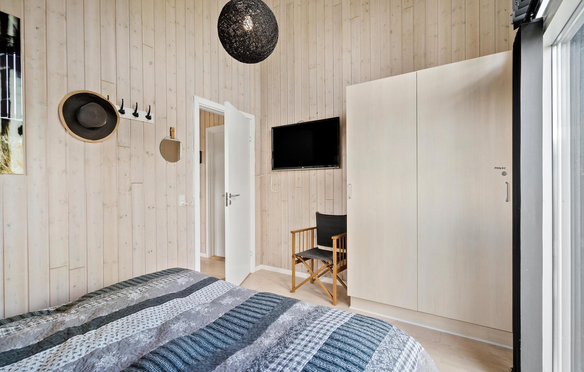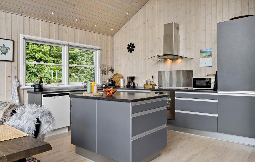 Indretningen i jeres feriehus fremtræder virkelig flot med loft til kip, velholdte træpaneler og en stor vinduesfront, der giver lækre lysindfald og en skøn udsigt til det grønne. Hvis vinden bider lidt fra sig, kan I fyre op i brændeovnen, der giver varme og et knitrende lydtapet til madlavningen i det veludstyrede køkken og til aftensmad ved spisebordet. Senere kan I snuppe et slag dart, smide en god film på tv'et eller måske I skal forkæle jer selv med en tur i boblebadet på badeværelset?