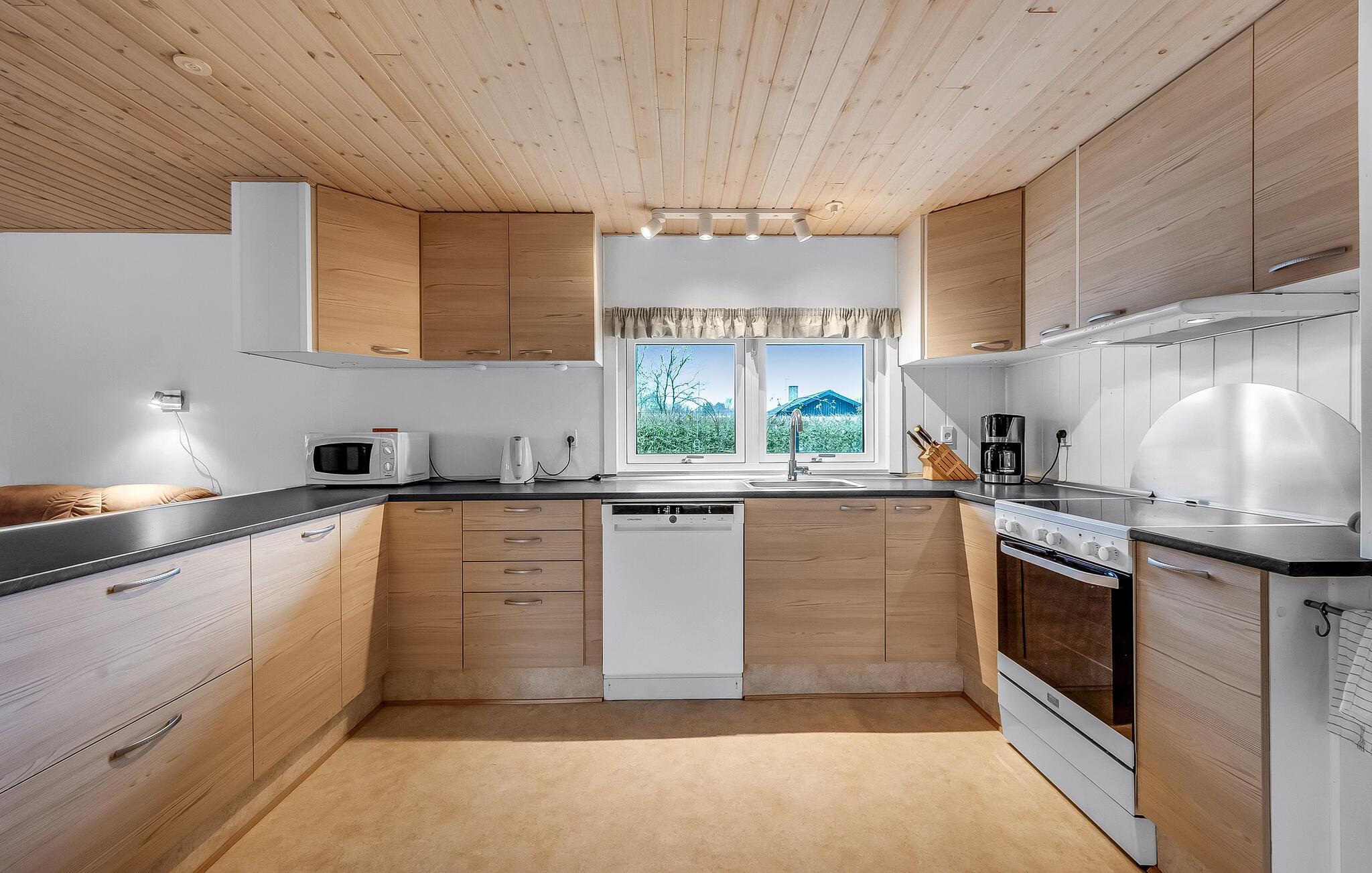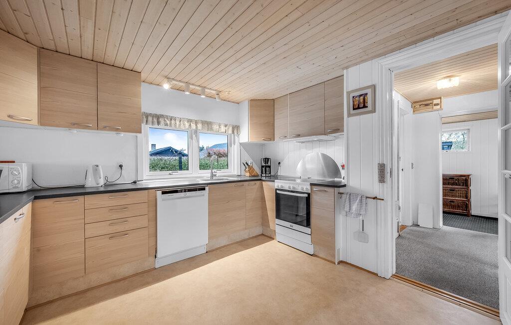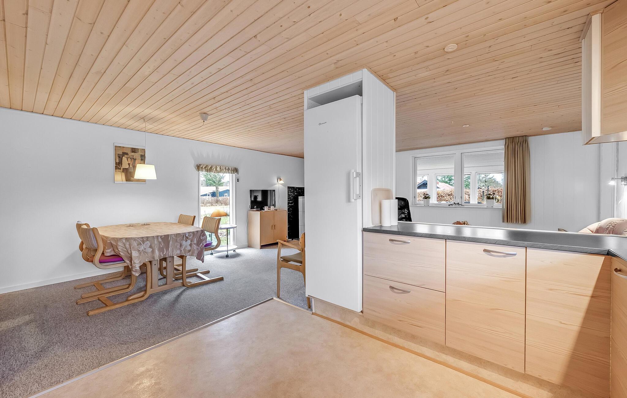 Dette hyggelige feriehus lægger op til en afslappende ferie ikke langt fra Ringkøbing Fjord. Begynd dagene med en afslappet morgenmad, som I kan tilberede i det rummelige, åbne køkken og sidde sammen ved spisebordet med udsigt over haven. Bagefter kan I slappe af i det behagelige sofahjørne med et sjovt brætspil.