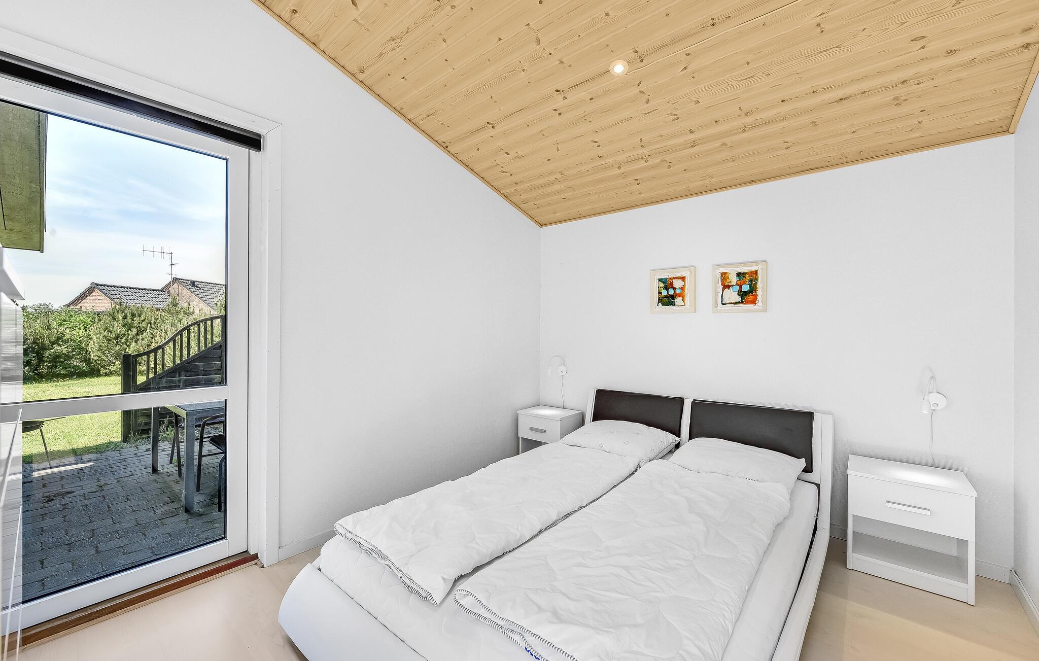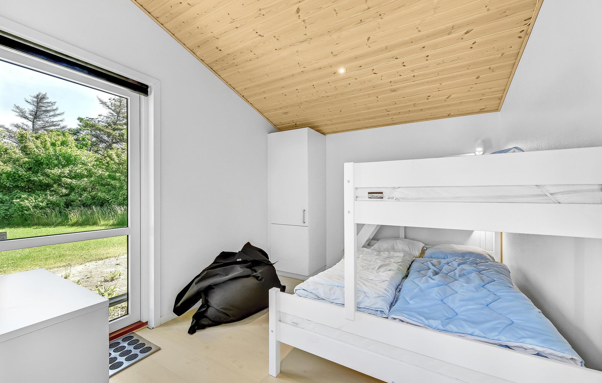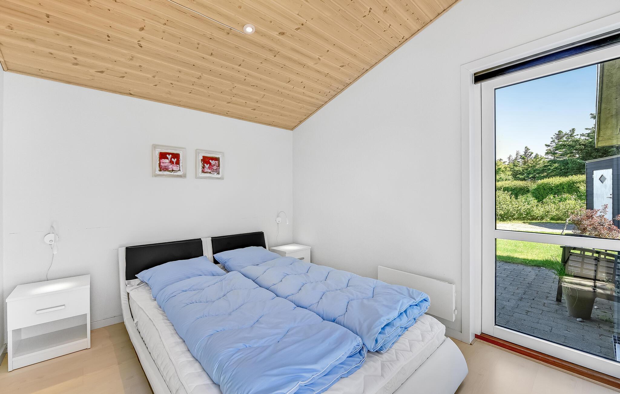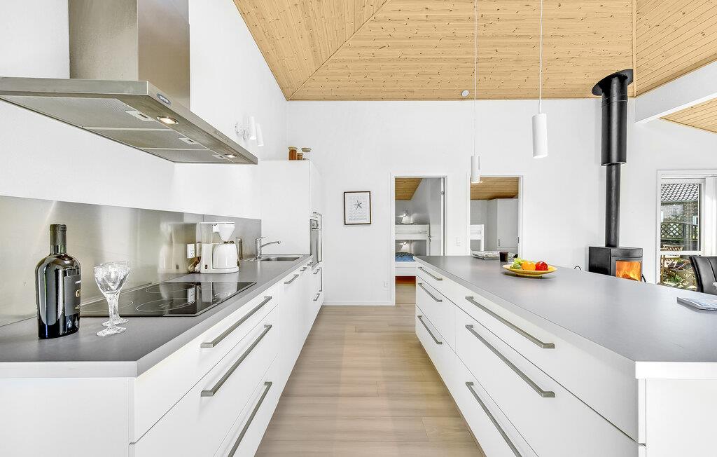 Dette komfortable og rummelige feriehus venter på jer i kort afstand fra stranden. De hyggelige værelser med moderne møbler tilbyder rigelig plads til en familieferie og tilbyder takket være de store vinduer en smuk udsigt ud over naturen. Sæt jer til rette i saunaen og spabadet, og efter en begivenhedsrig dag kan I gøre det behageligt i opholdsstuen, hvor I kan streame en god serie, lave mad sammen eller blot slappe af ved brændeovnen.