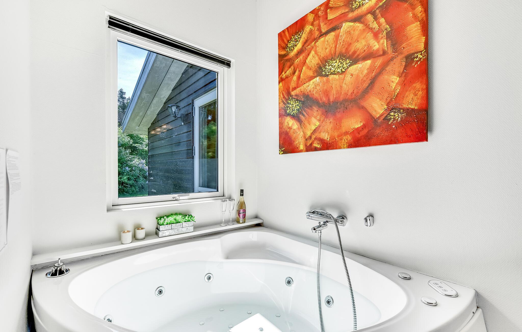 Sæt jer til rette i dette komfortable feriehus med spa nær stranden.