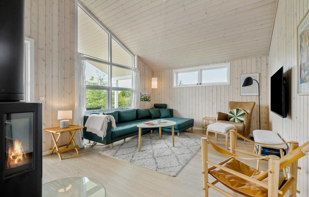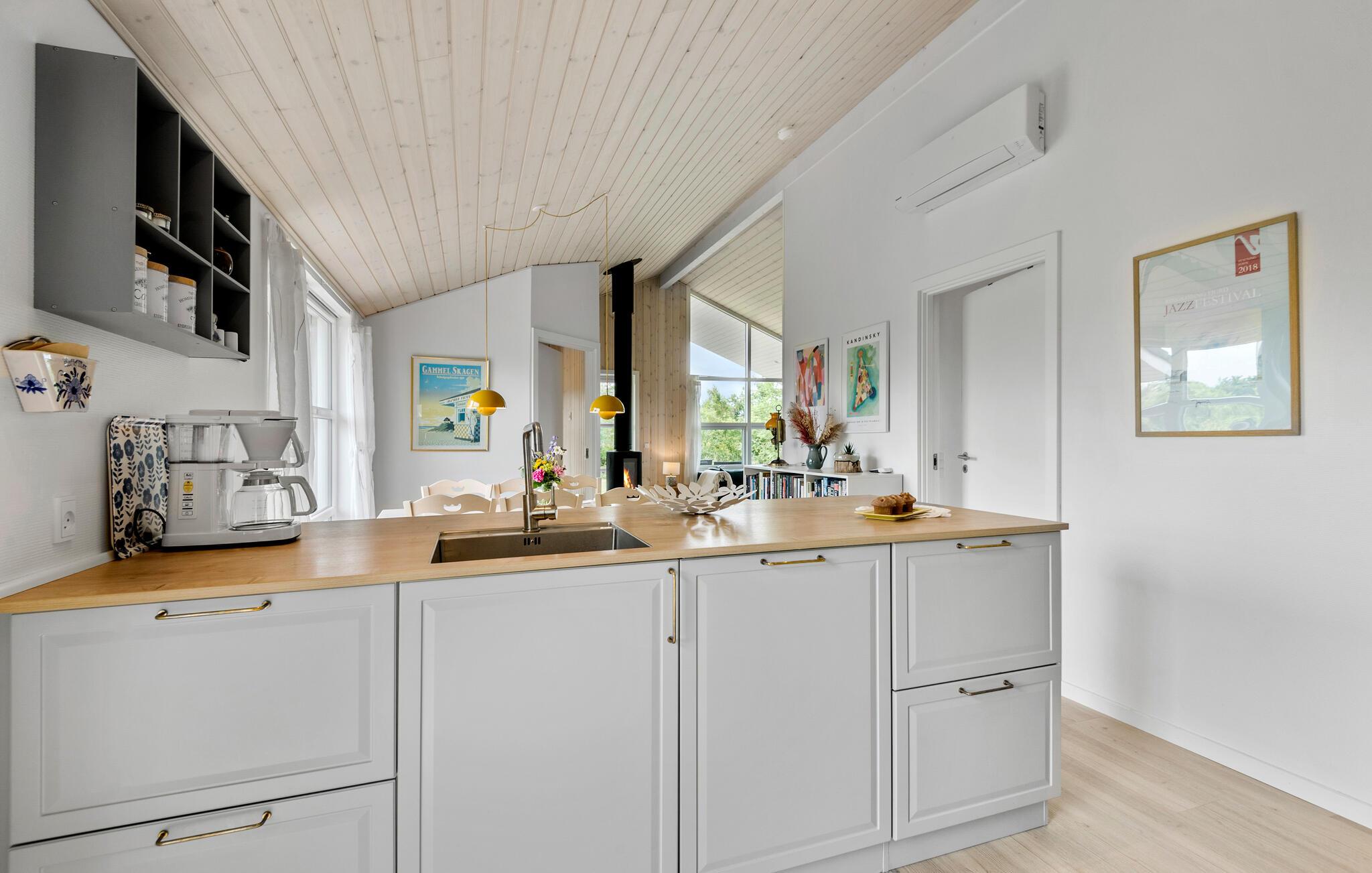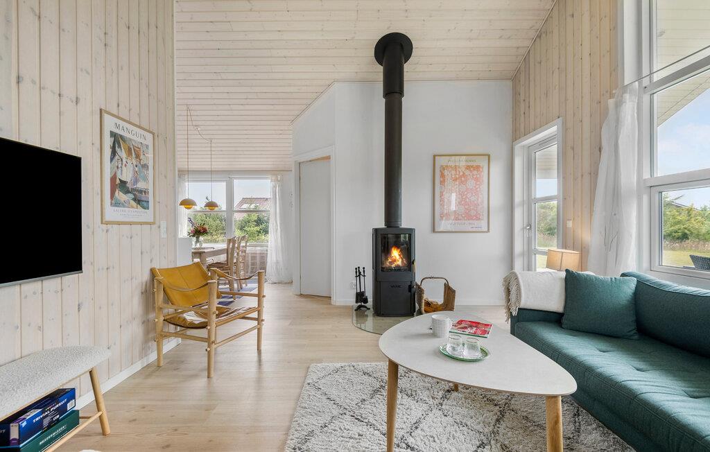 Moderne feriehus ved Skaven Strand med sauna, brændeovn og åben planløsning, perfekt til familieferie ved Ringkøbing Fjord.