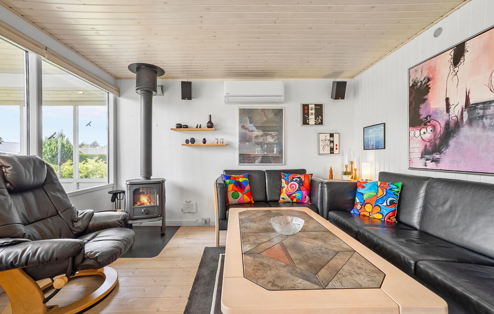 Velkommen til dette lyse og indbydende feriehus, hvor I kan slappe af fra hverdagen og helt hengive jer til jeres familie. Tilbered lækre retter og tænd op i brændeovnen. Forkæl jer selv med afslappende øjeblikke i saunaen, vær vært for en sjov brætspilsaften, læs en bog for børnene eller snak til langt ud på natten i den behagelige sofa.