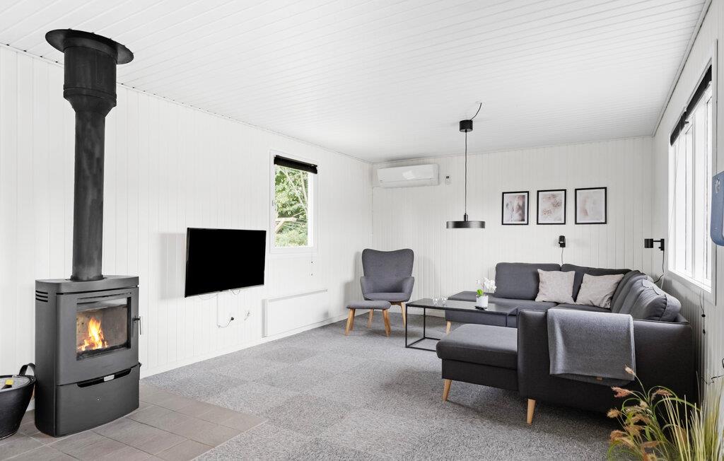 Der er lyst og rart i dette klassiske sommerhus, så her kommer alle automatisk ned i tempo. Farveskalaen er enkel og rolig, og både inde og ude virker der åbent, fredfyldt og behageligt. Tænd op i brændeovnen på en kølig dag, giv jer i kast med lækre ferieretter i køkkenet og nyd en hvilestund i saunaen efter en lang, frisk gåtur - der er mange måder at nyde feriedagene på.