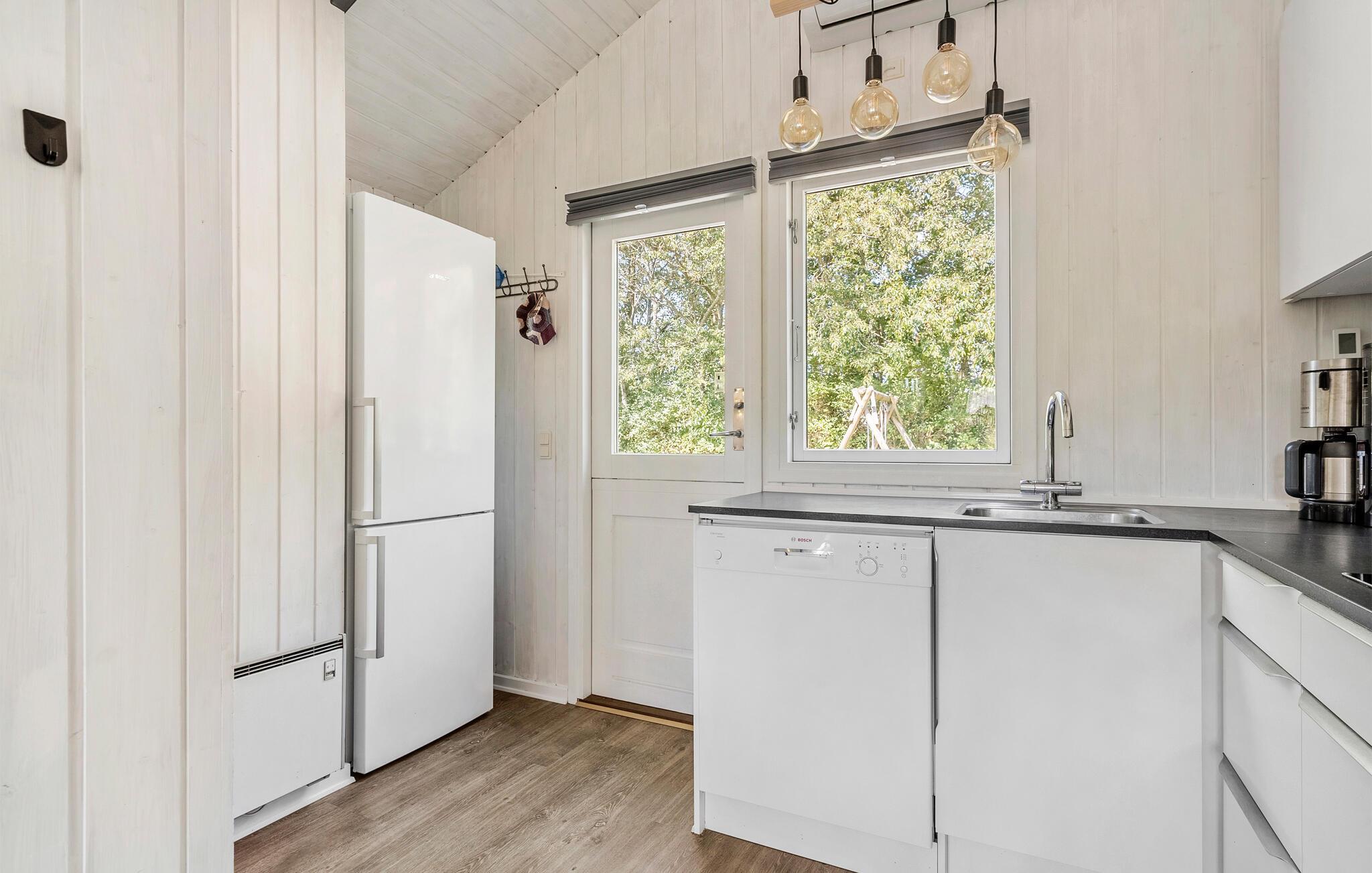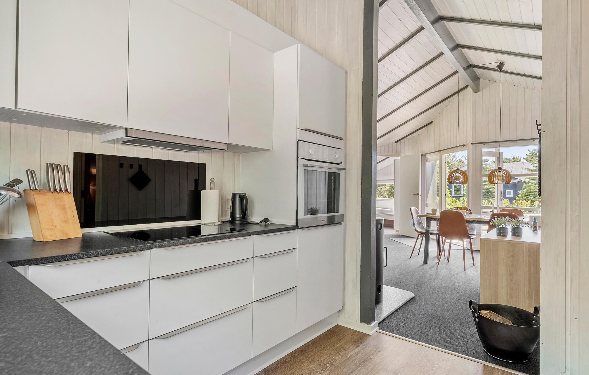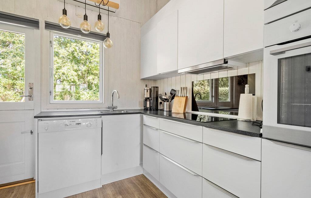 Dette rummelige hus er noget særligt med sin afslappede atmosfære, hvor I hurtigt kan koble fra hverdagen. Et smukt, lyst trælook, gulv til loft-vinduer og elegante møbler skaber den perfekte oase til jeres ferie. Nyd den beroligende udsigt over de grønne omgivelser, lav mad sammen i det moderne køkken, og afslut aftenen med et glas vin.