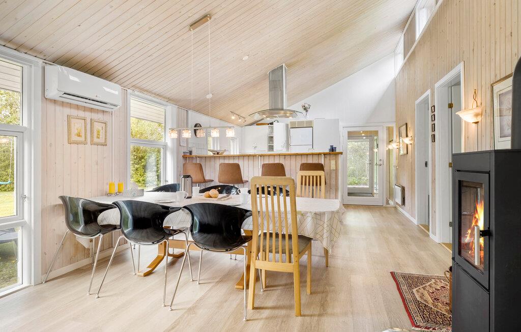 Giv jer selv en pause fra hverdagen, og tilbring en afslappende ferie med familien i dette attraktive hus. Her finder I alt, hvad I har brug for til at føle jer godt tilpas og slappe af. Prøv nye opskrifter i køkkenet, se en film på sofaen, eller slap af i saunaen. Hyg jer i udestuen med en spændende bog, eller nyd sommerdagene udenfor. Måltider under åben himmel, mange timers leg på trampolinen og de andre legeredskaber samt aftener omkring ildstedet og måske også en overnatning i shelteren vil fuldende jeres feriedage.