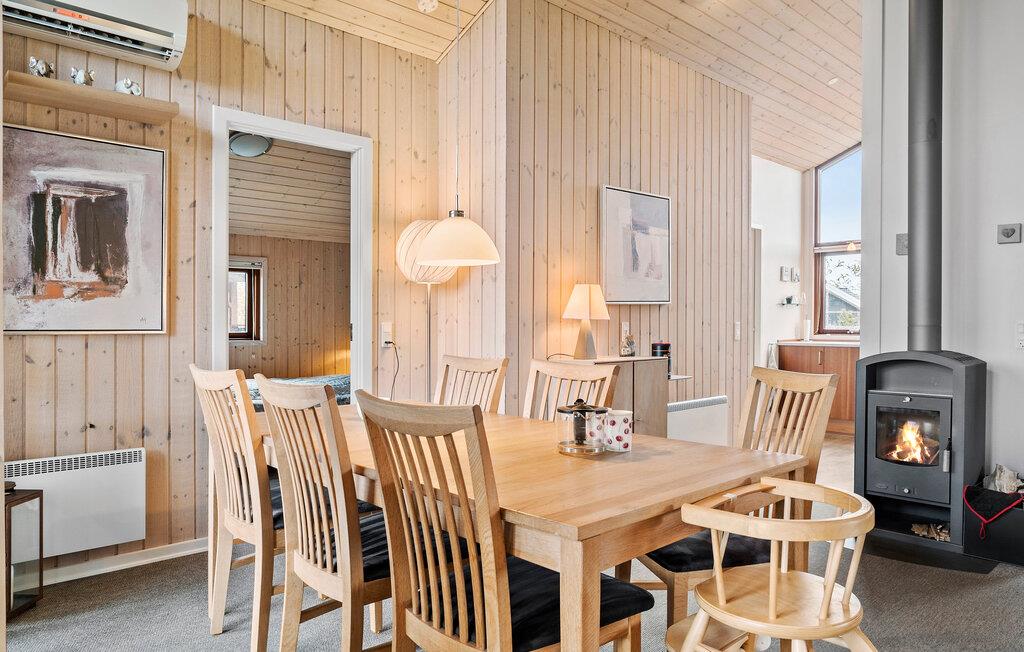 Velkommen til dette familievenlige hus, der ligger i skønne omgivelser for enden af en blind vej tæt på Skaven Strand. Indvendigt emmer det af hygge med varme træpaneler, åben planløsning og store vinduespartier, der giver det indre et lækkert lysindfald og en dejlig udsigt til havne. Hvis vejret lidt fra sig, kan I tænde op i brændeovnen, der giver varme og et knitrende lydtapet til jeres aftensmad ved spisebordet og en hyggelig filmaften i sofaen.