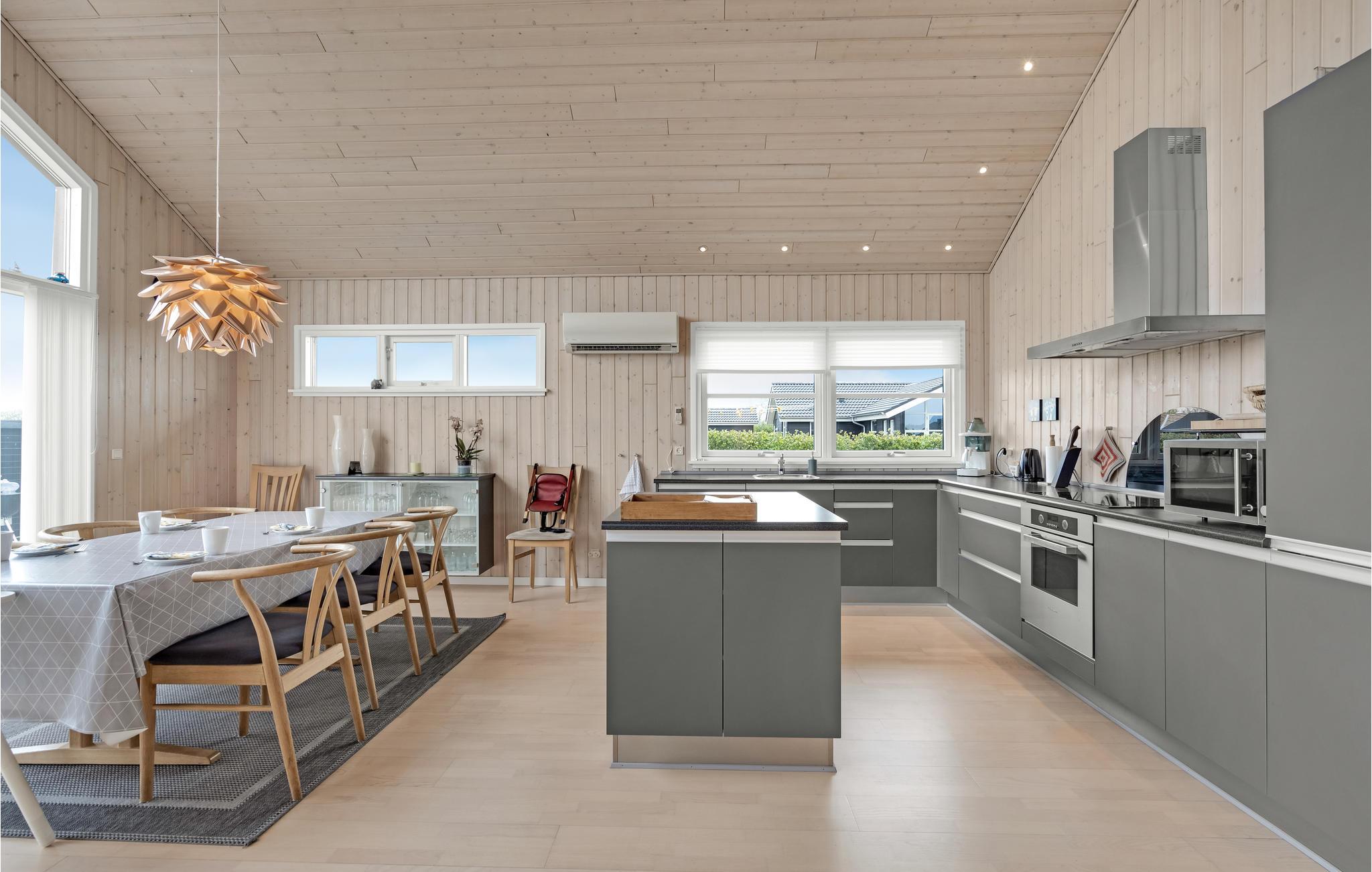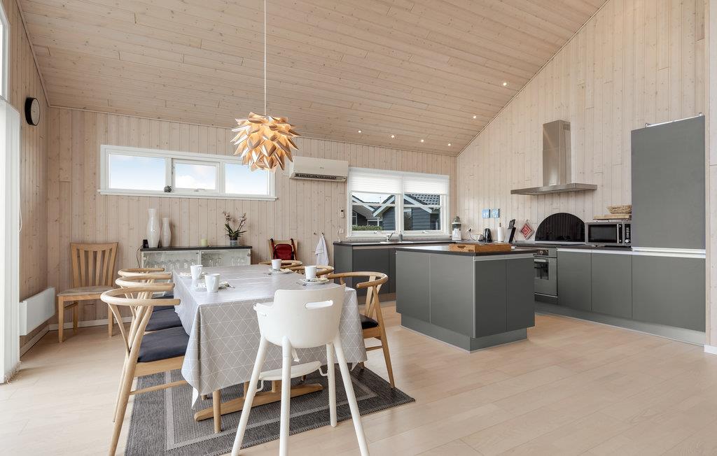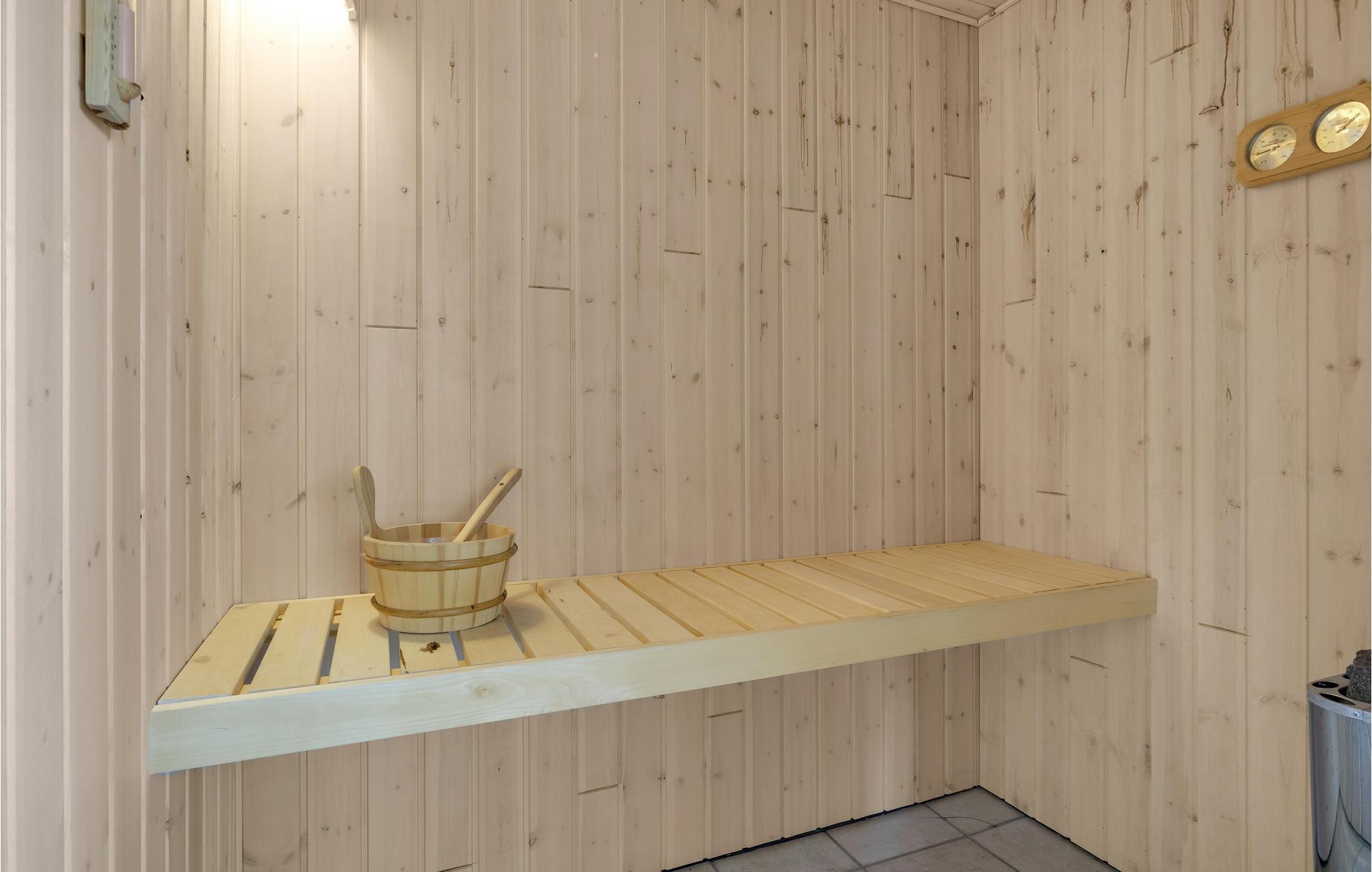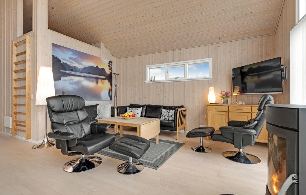 Der er gode rammer til at samles i dette store, flotte sommerhus, som er smagfuldt og enkelt indrettet og har et fantastisk lys fra husets mange vinduer. I glemmer hurtigt alt om hverdagens travle program, for her er alt gjort klar til, at I skal fokusere på at slappe af. Efter en lang dag på farten kan I læne jer tilbage stuens sofaer, mens ilden blusser i brændeovnen, eller skrue ekstra op for forkælelsen med en rolig stund i saunaen eller spabadet.