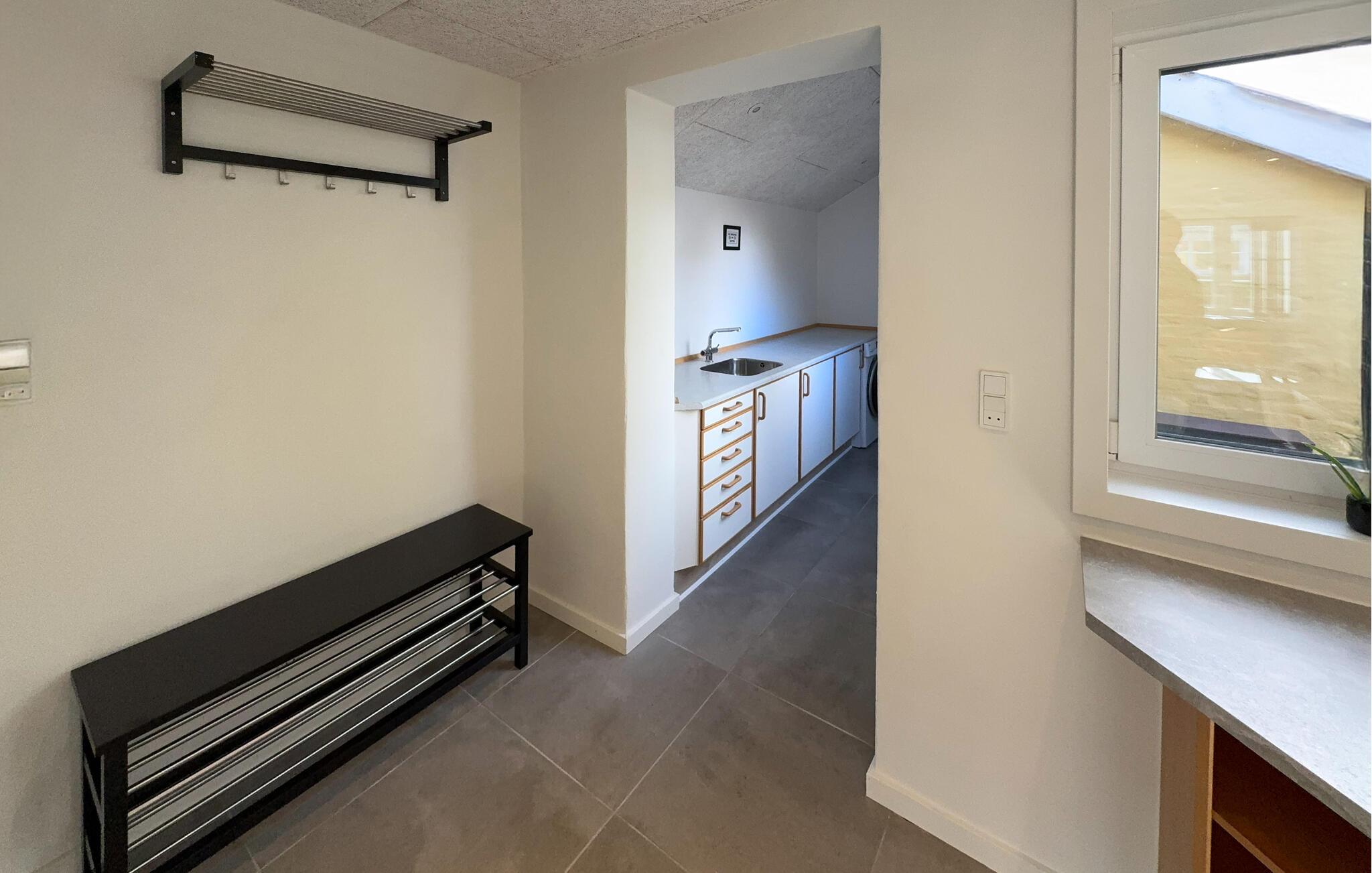 Hyggeligt feriehus nær fjorden med åben stue, veludstyret køkken og privat have tæt på Skaven Strand.