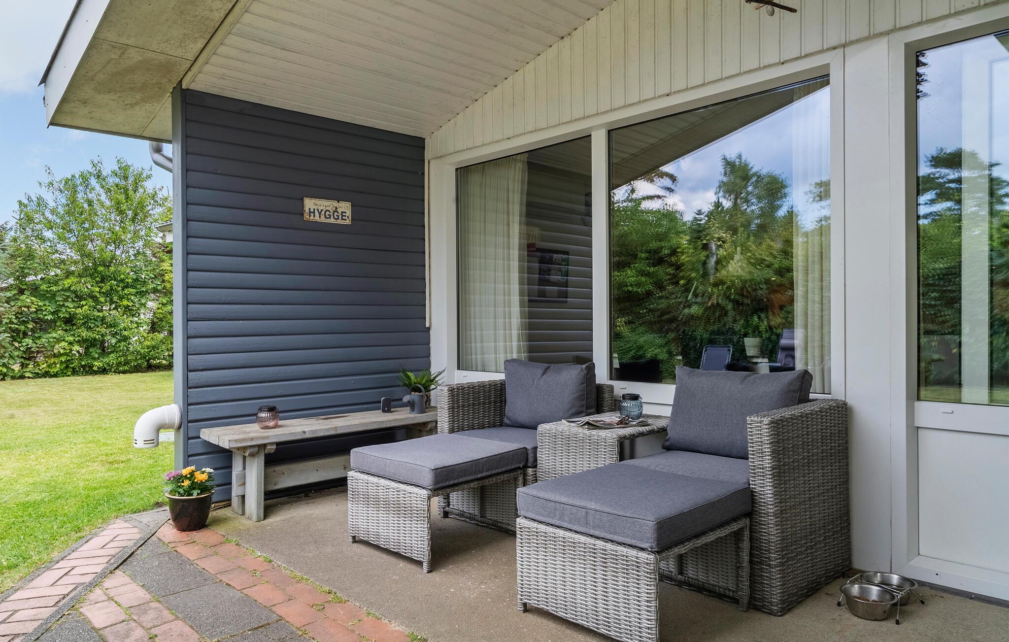 Hyggeligt feriehus ved Skaven Strand med sauna, brændeovn og stor have til afslapning og udendørs samvær.