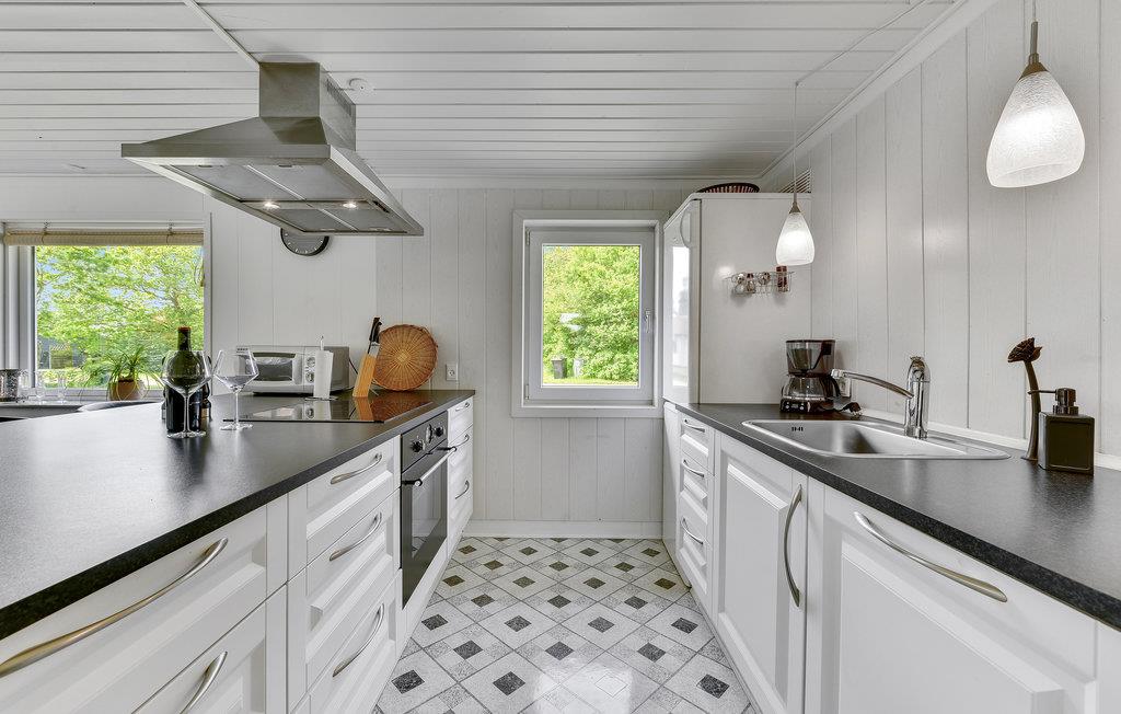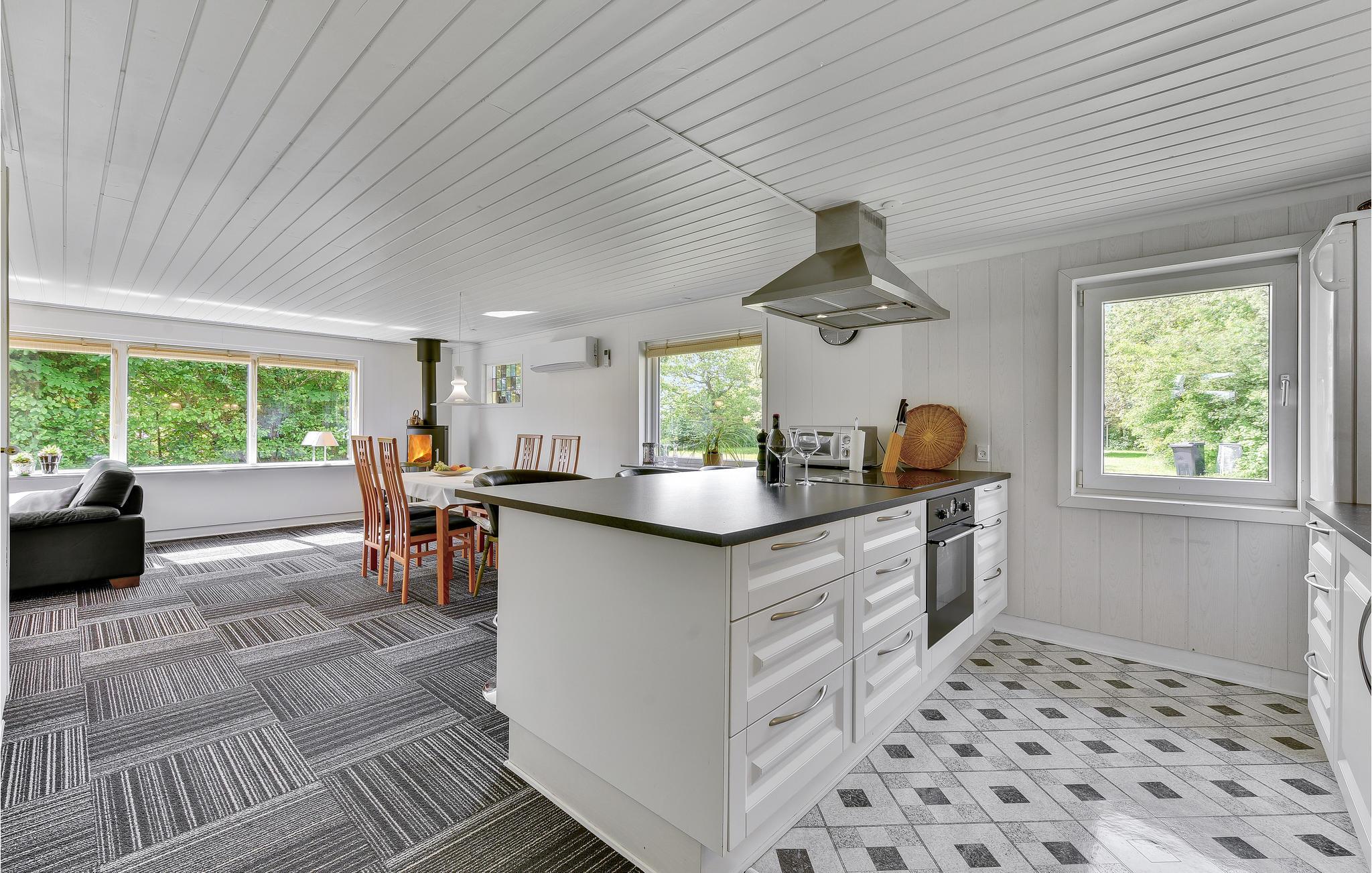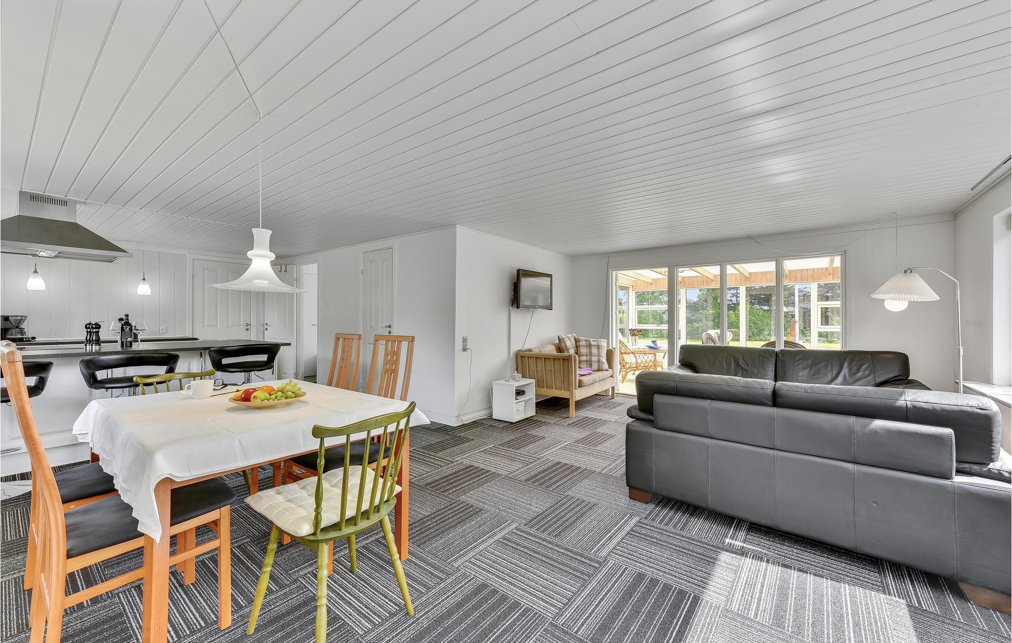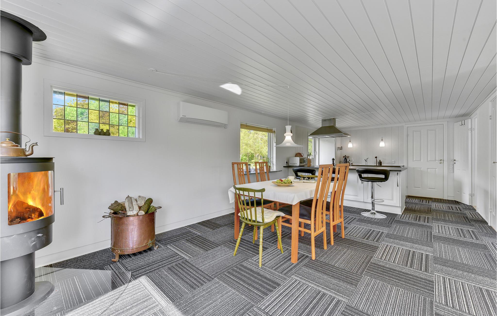 Oplev en afslappende ferie i dette dejligt beliggende hus, hvorfra I kun har få skridt til stranden. Nyd naturens nærhed i den hyggelige udestue, eller slap af efter dagens oplevelser i de komfortable sofaer foran den knitrende brændeovn.