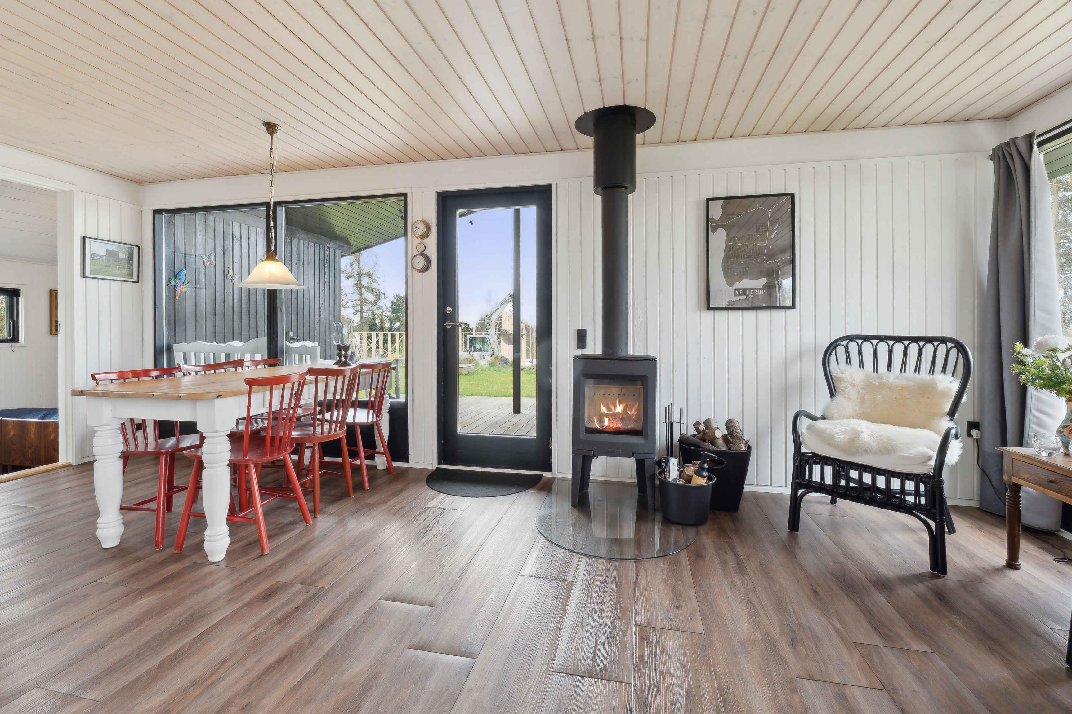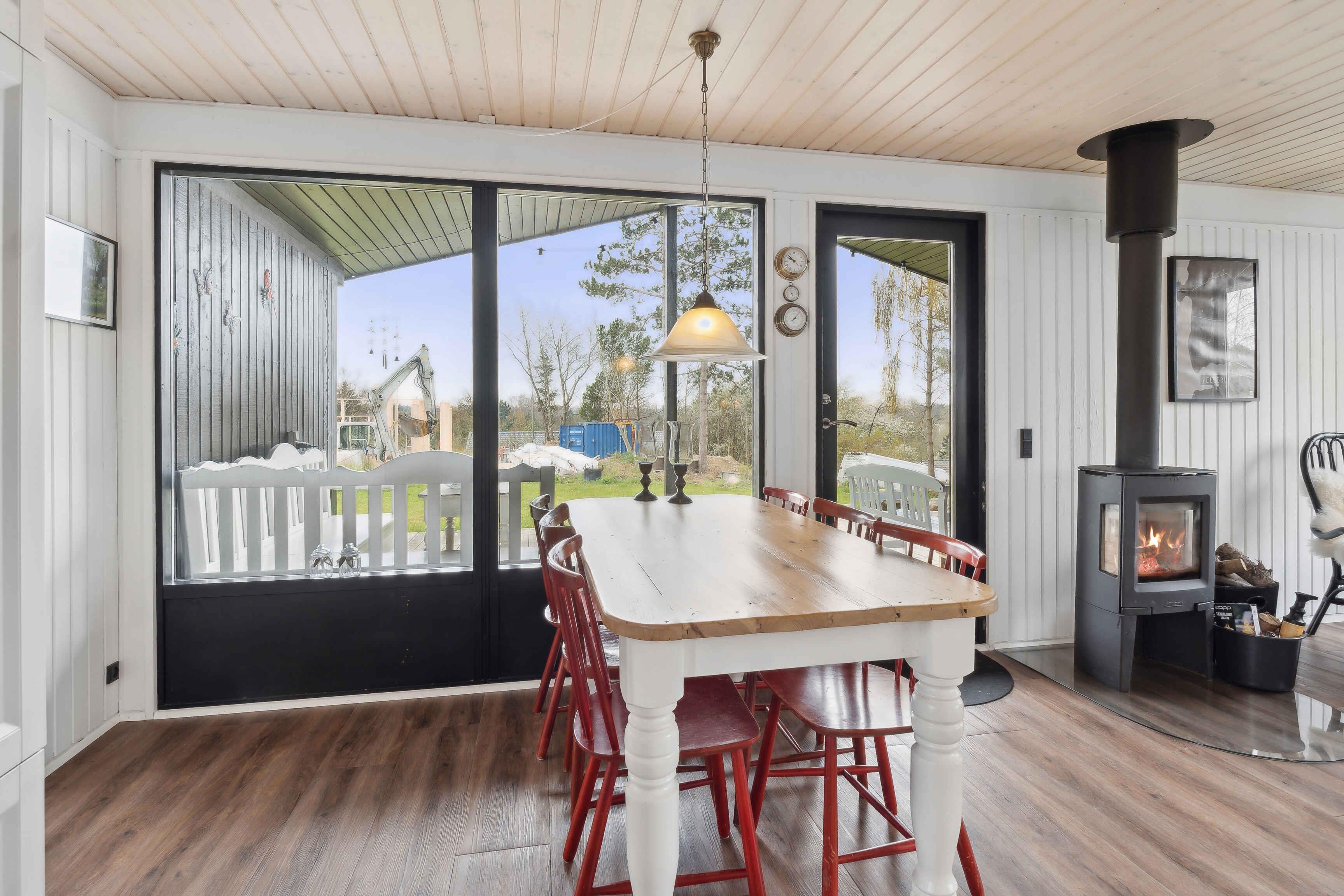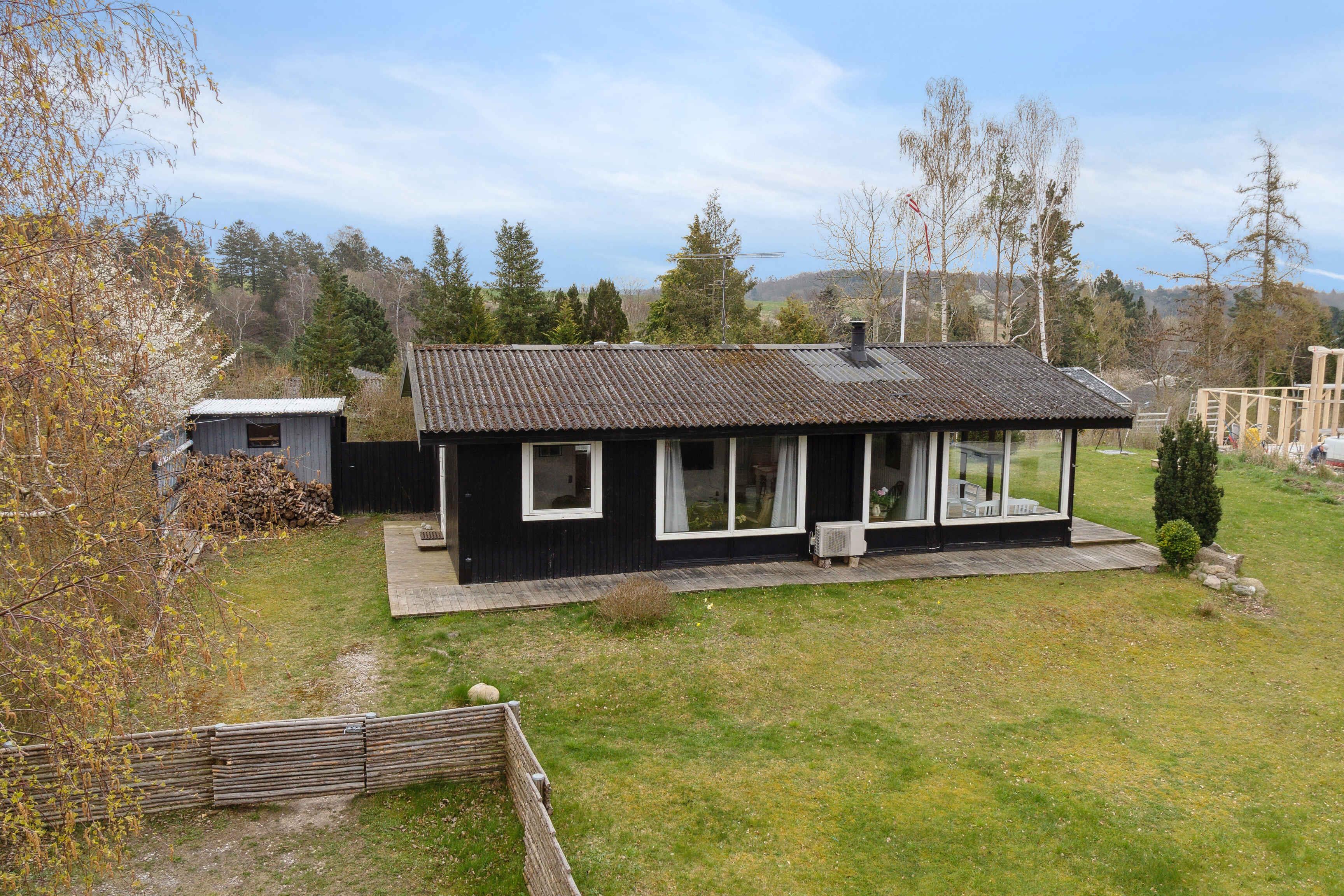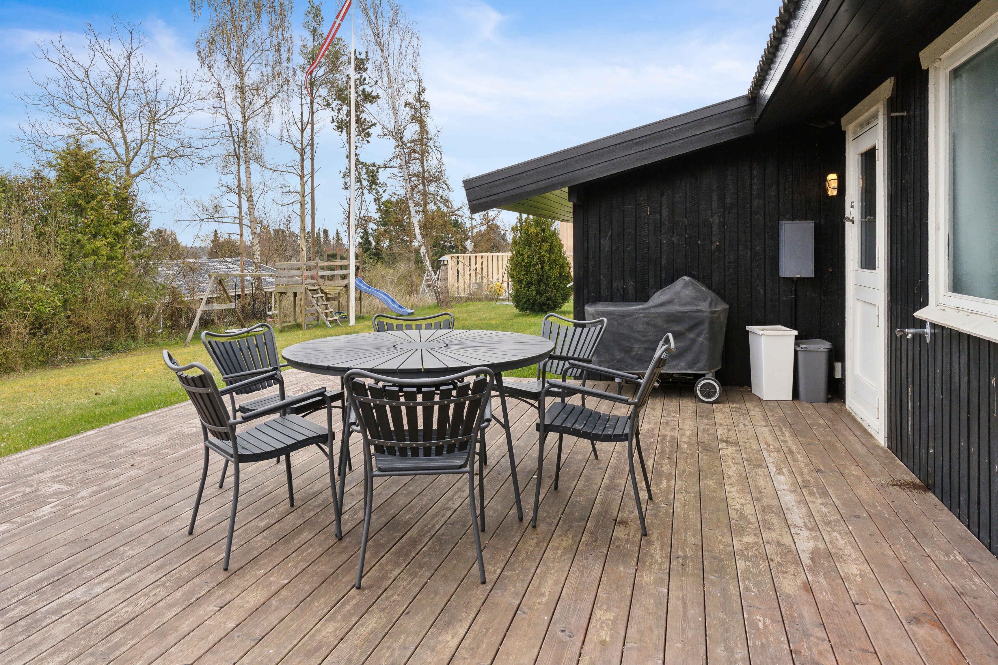 Skønt hus med kort vej til vandet med børnevenlig badebro, beliggende i det kuperede naturskønne hornherred. Den overdækkede terrasse byder til sene aftner i solnedgangen, med boblende vin og hygge, mens børnene boltrer sig i havens lege redskaber.