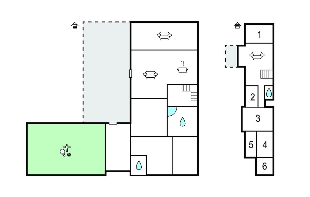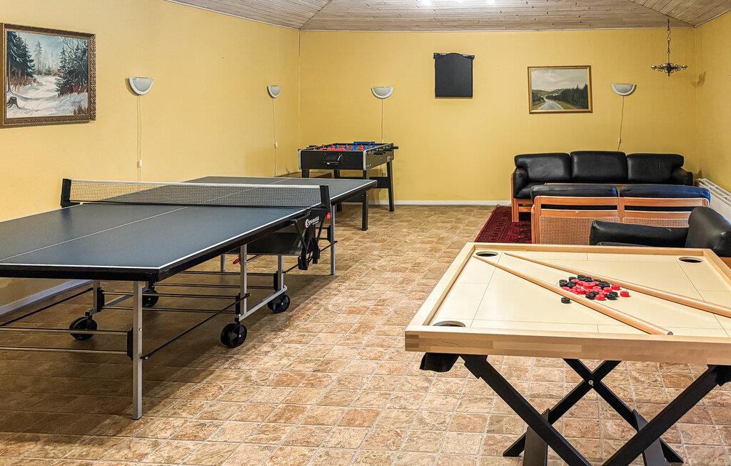 Dette hus udstråler en hyggelig atmosfære med masser af træ og varme farvetoner. Slap af på hemsen med en god bog, eller nyd udsigten gennem de store vinduer til den grønne natur. Spil bordfodbold eller bordtennis sammen og få nogle underholdende timer med familie eller venner. Tilbered lækre måltider i det store, veludstyrede køkken, og nyd samværet omkring bordet.