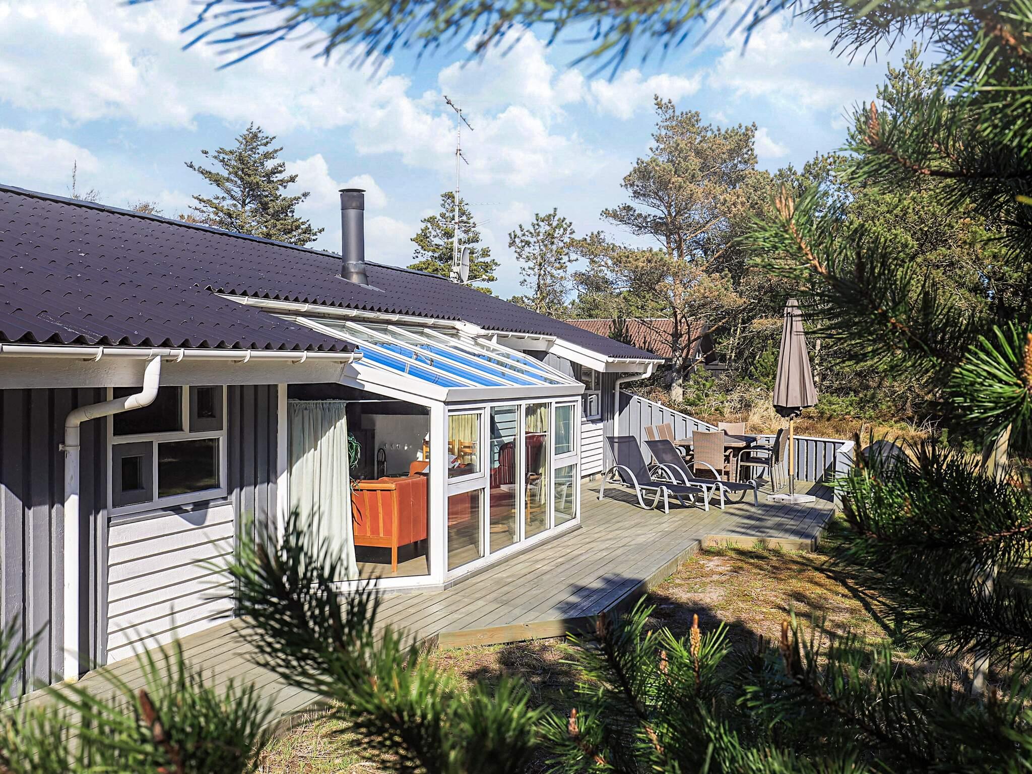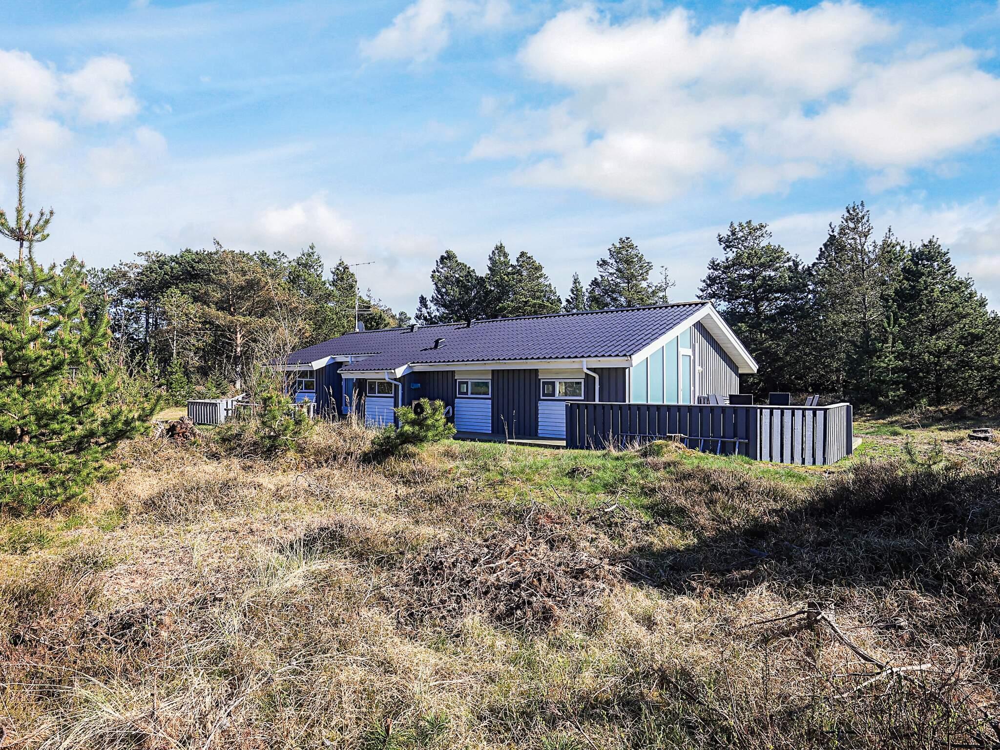 På en stor klitgrund med lyng ca. 500 m fra Skiveren Strand ligger dette sommerhus med swimmingpool. Der er to badeværelser med bruseniche samt separat afdeling, hvor I finder poolen.
