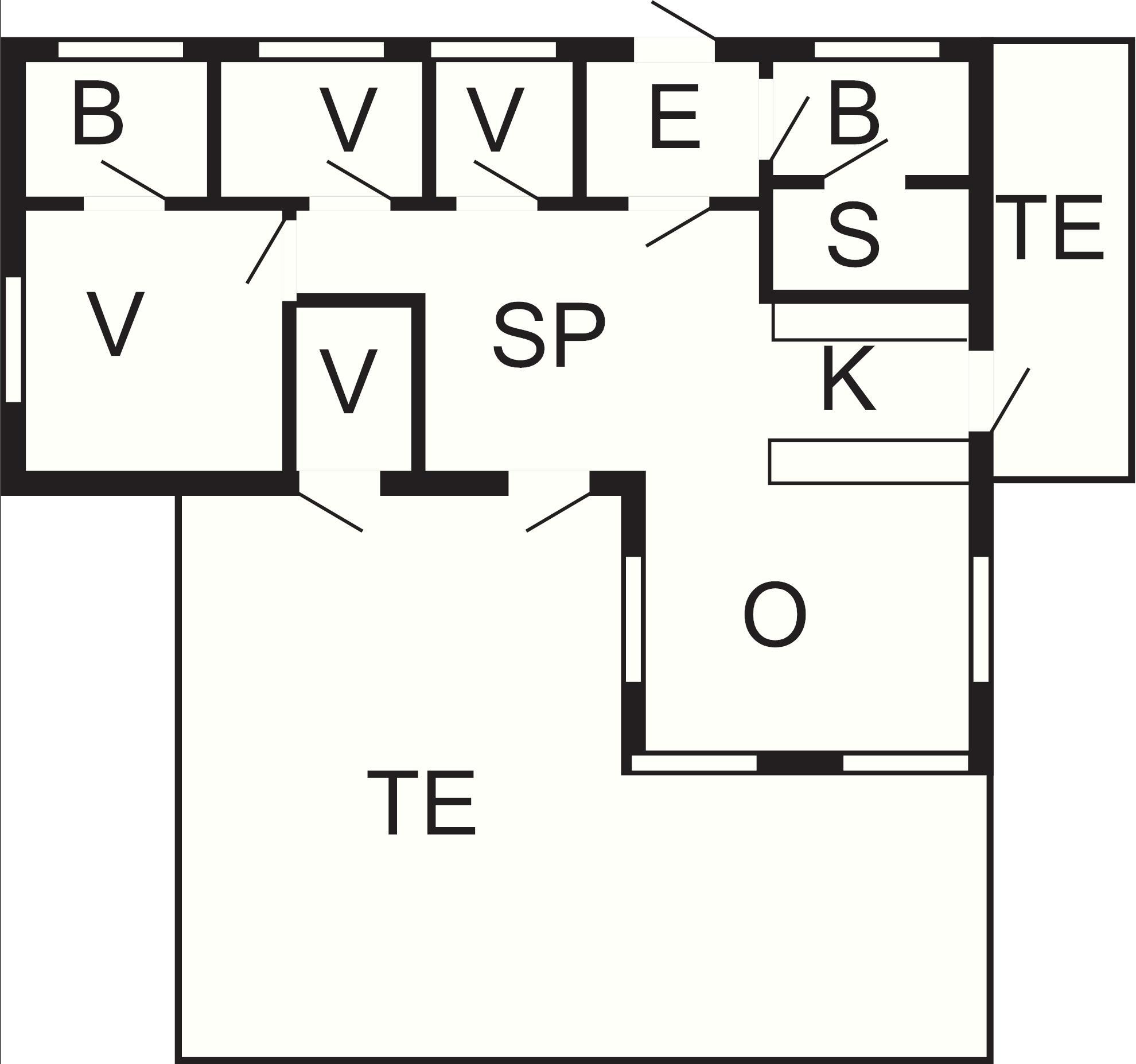 4 Soveværelser: (1DS)+(2K)+(2K)+(2K)
