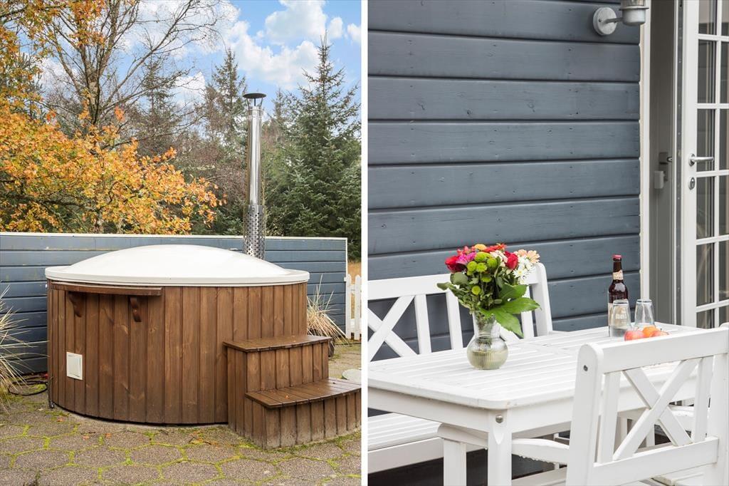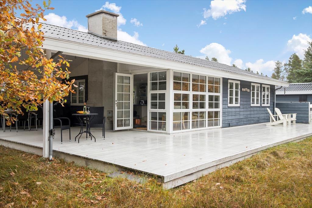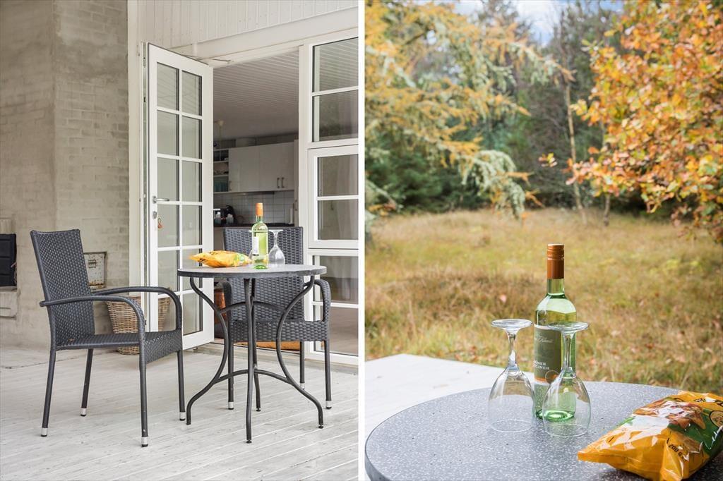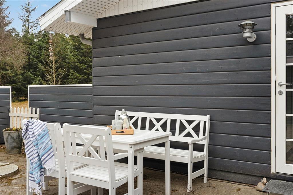 Det herlige terrassemiljø omkring sommerhuset giver dig rig mulighed for at nyde livet under åben himmel. Med havemøbler og liggestole kan du finde dig til rette i solens varme, mens børnene leger i haven. Den naturskønne have indbyder til at koble af og lade tankerne flyde, og om aftenen kan I samles omkring grillen og nyde en hyggelig middag under den lyse, nordjyske himmel. Terrassen er en oplagt plads til både morgenkaffe og aftensmad, mens lyden af fuglesang og duften af skov giver en rolig baggrund til jeres feriedage.
