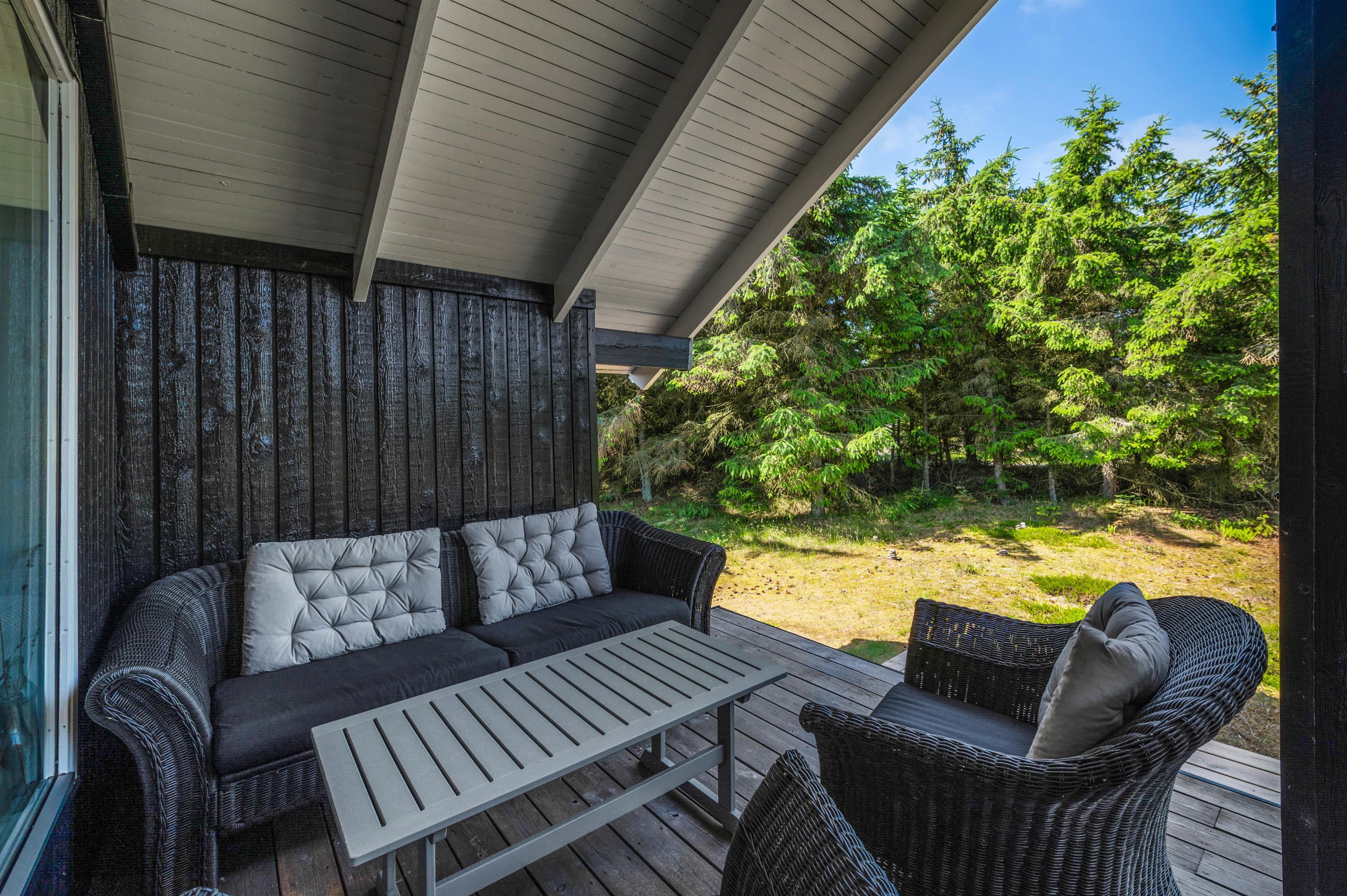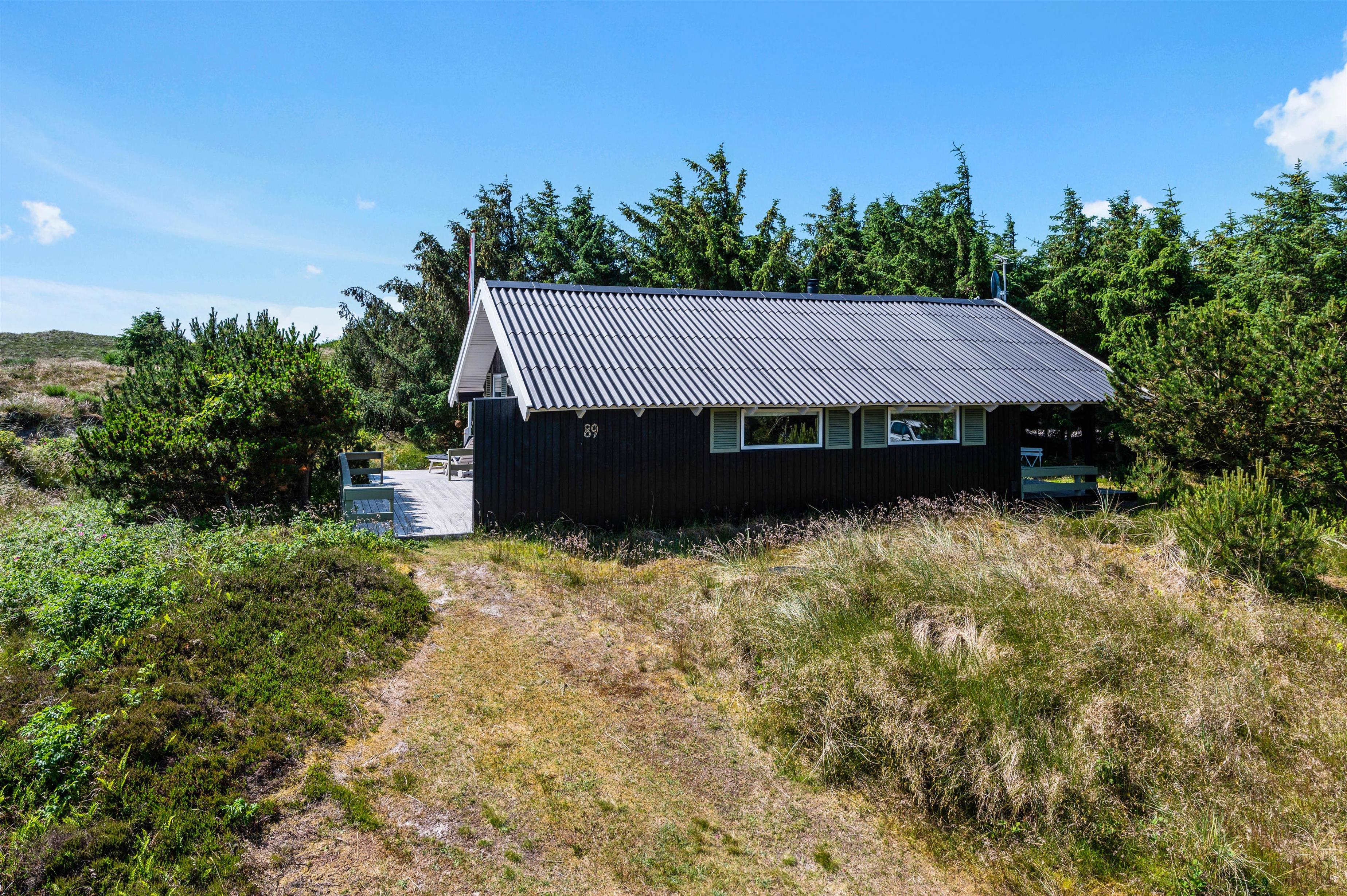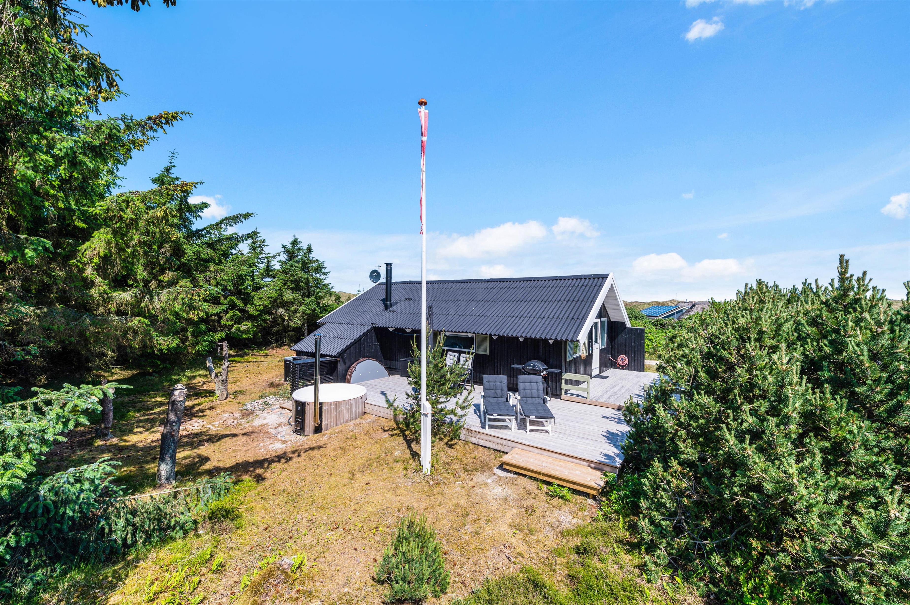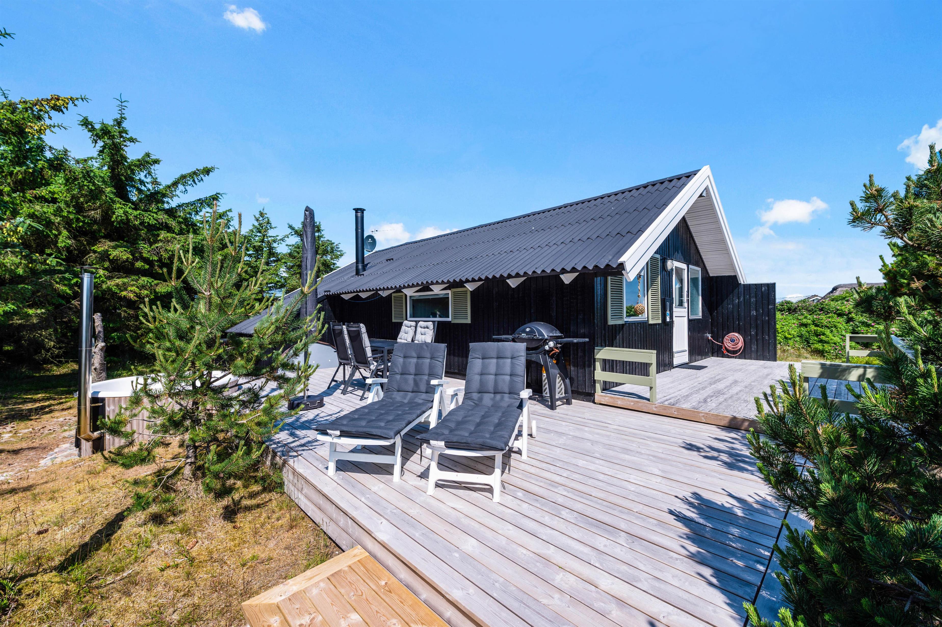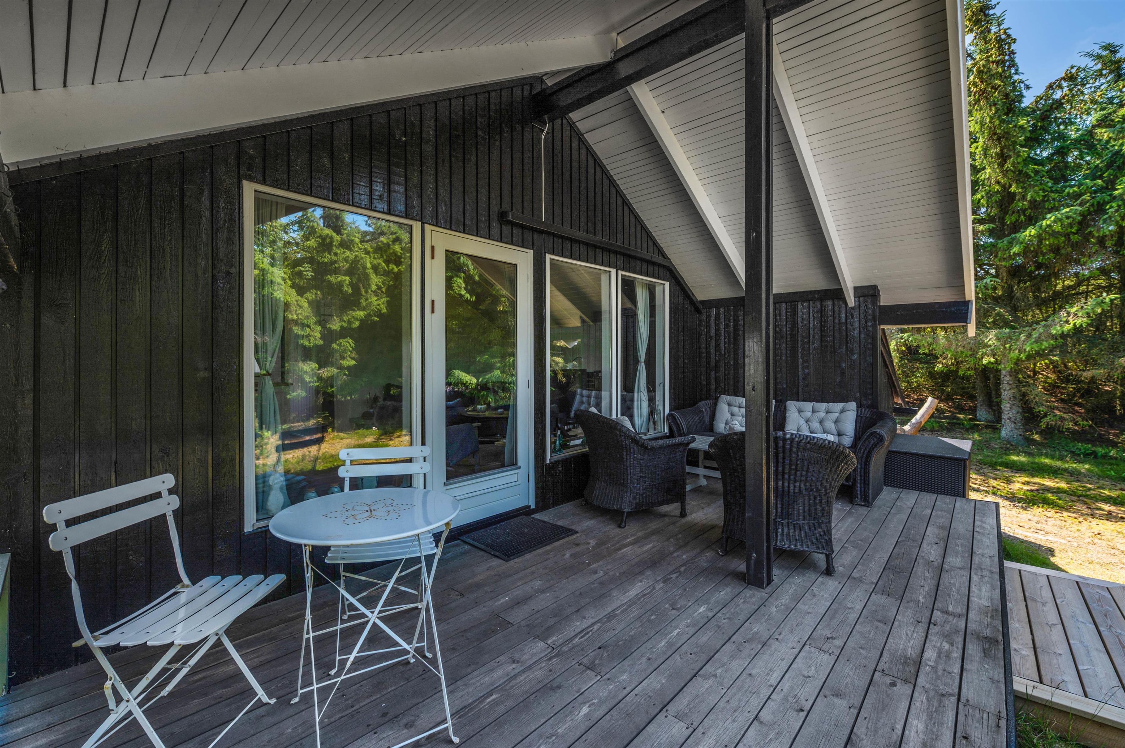 Feriehuset på Skodbovej 89 har flere hyggelige terrasser, så der er altid mulighed for at finde en plet med sol eller skygge. Feriehuset er placeret på en naturgrund, der er omkranset af træer og buske. I kan nyde privatlivet i fred og ro, mens I hygger jer med gasgrillen og der tændes op i vildmarksbadet, der giver sommerhuset et touch af wellness.