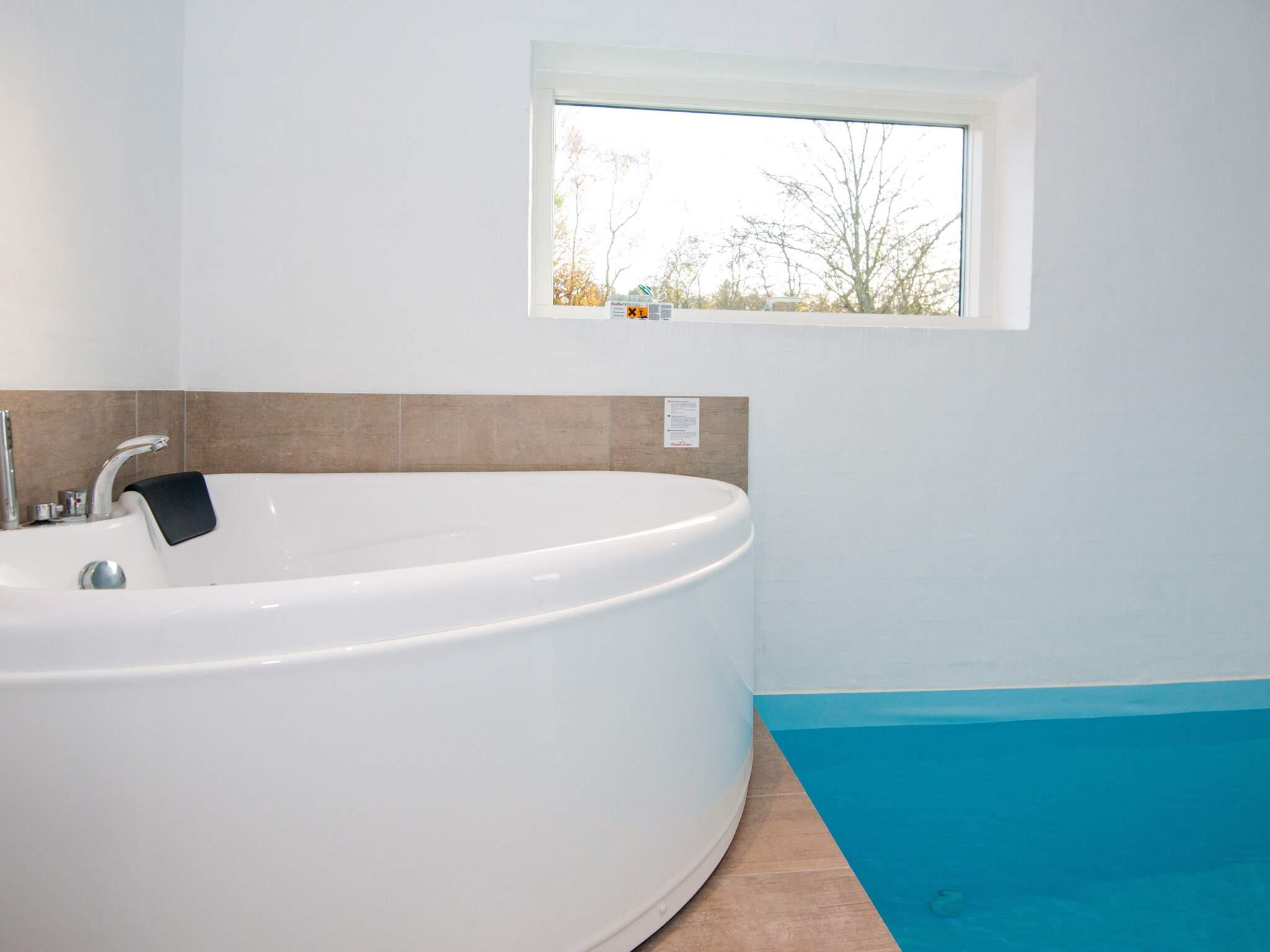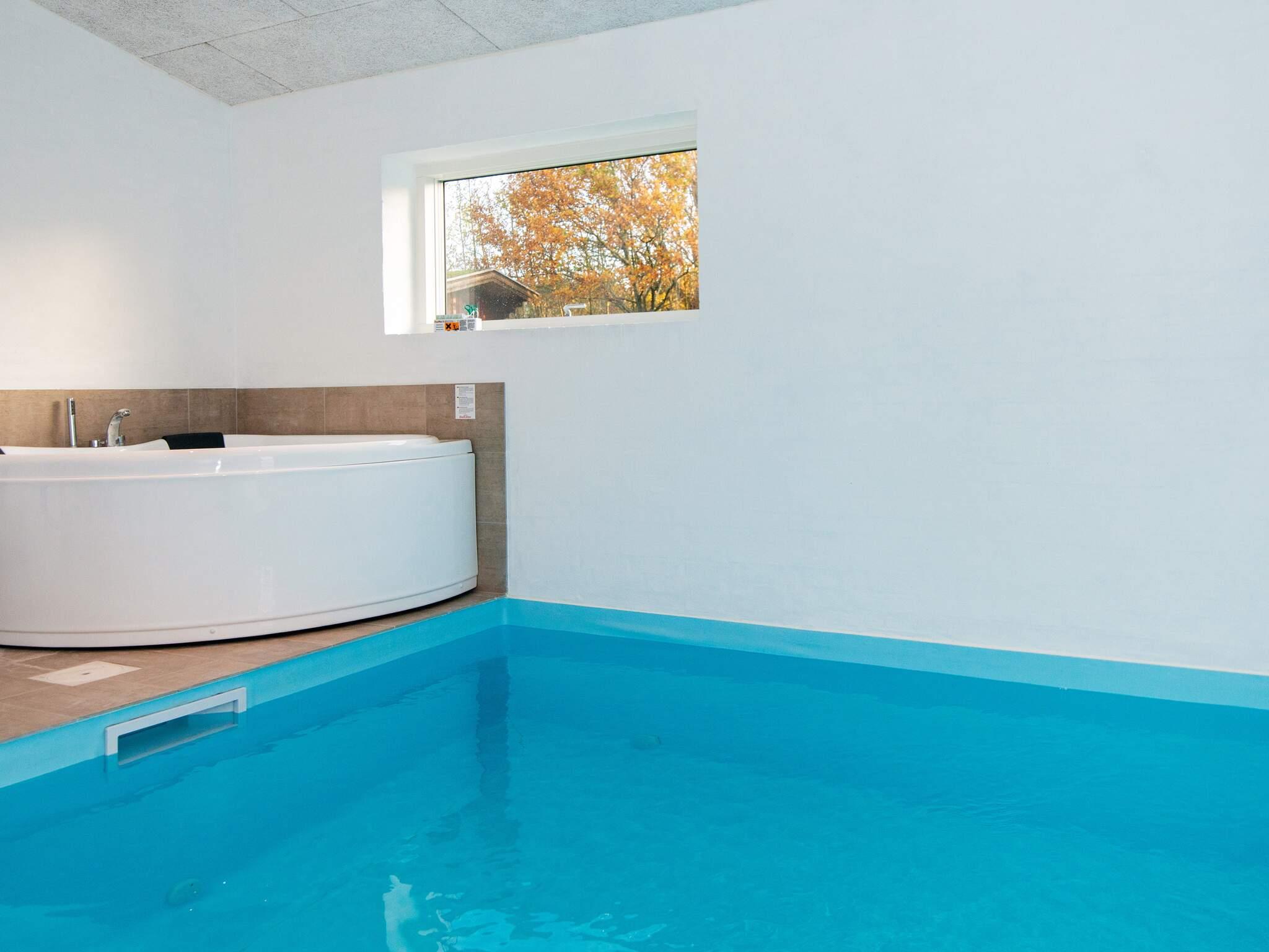 Fuldmuret sommerhus med swimmingpool, spabad og sauna beliggende i nærheden af den populære ferieby Fjellerup på Norddjurs. Huset er opført i kvalitetsmaterialer og har alt I behøver til ferien med gode soveværelser, to gode badeværelser, stort, åbent alrum og mindre aktivitetsrum. Fra aktivitetsrummet er der adgang til den store hems og udgang til terrassen. Det store alrum har store panoramavinduer, hvor udsigten over havet kan nydes i fulde drag. Fra sommerhuset er der adgang til badestranden, som kun ligger få minutters gang fra huset. Hvis vejret ikke tillader det, er der en stor swimmingpool og spabad. Udendørs er der stort spabad med fast vandstand. Efter en tur i havet eller udendørs kan der være behov for at blive varmet godt igennem, hvilket kan gøres i sommerhusets sauna. I dette sommerhus kommer I ikke til at kede jer, da der i haven er legeredskaber til børnene og indendørs er der flere aktiviteter i aktivitetsrummet. Sommerhuset ligger nær den god badestrand i Fjellerup, der har minigolf, supermarked, ishus, fiskeforretning og det kendte vaffelbageri.