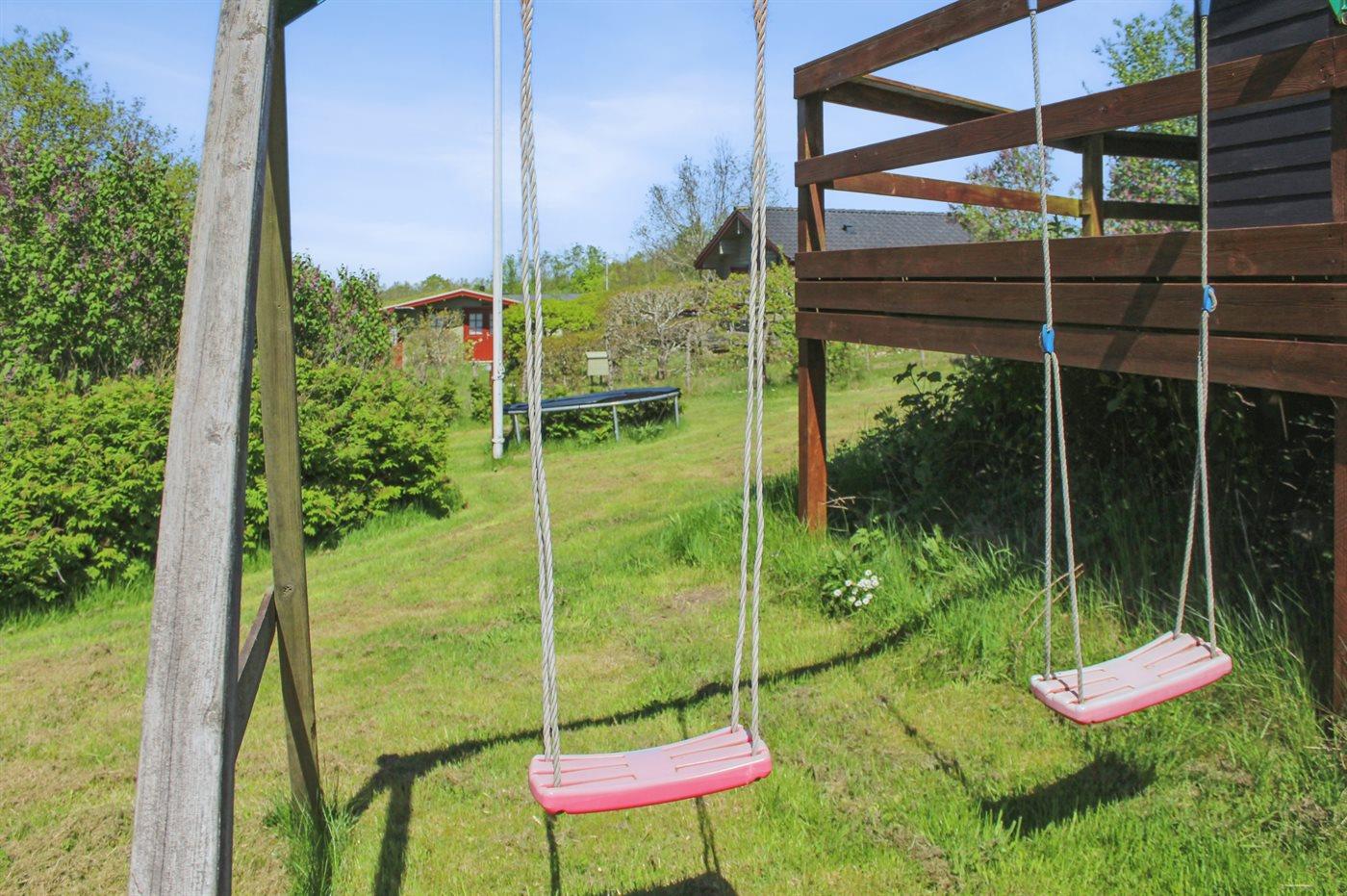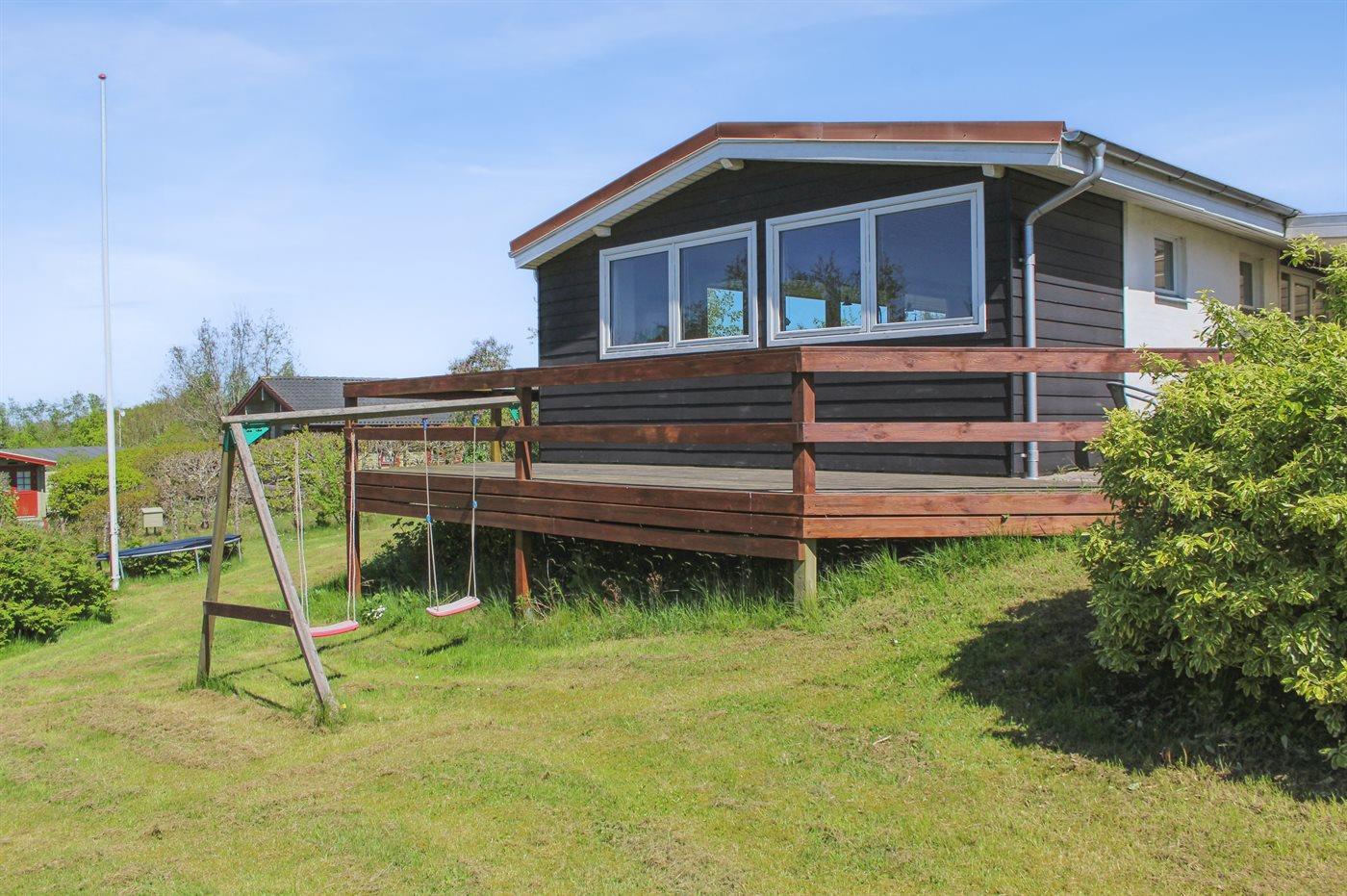 Ferieboligen er beliggende på en 1200 m² stor havegrund. Der er 700 m til havet. Nærmeste forretning er beliggende i en afstand af 4000 m. Til ferieboligen hører 15 m² terrasseareal. Desuden er der 20 m² overdækket terrasse. Gynge. Grill til rådighed. Der er installeret stik til opladning af elbil. Parkering ved ferieboligen.