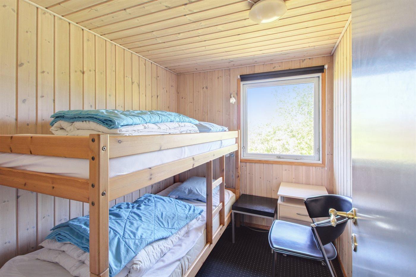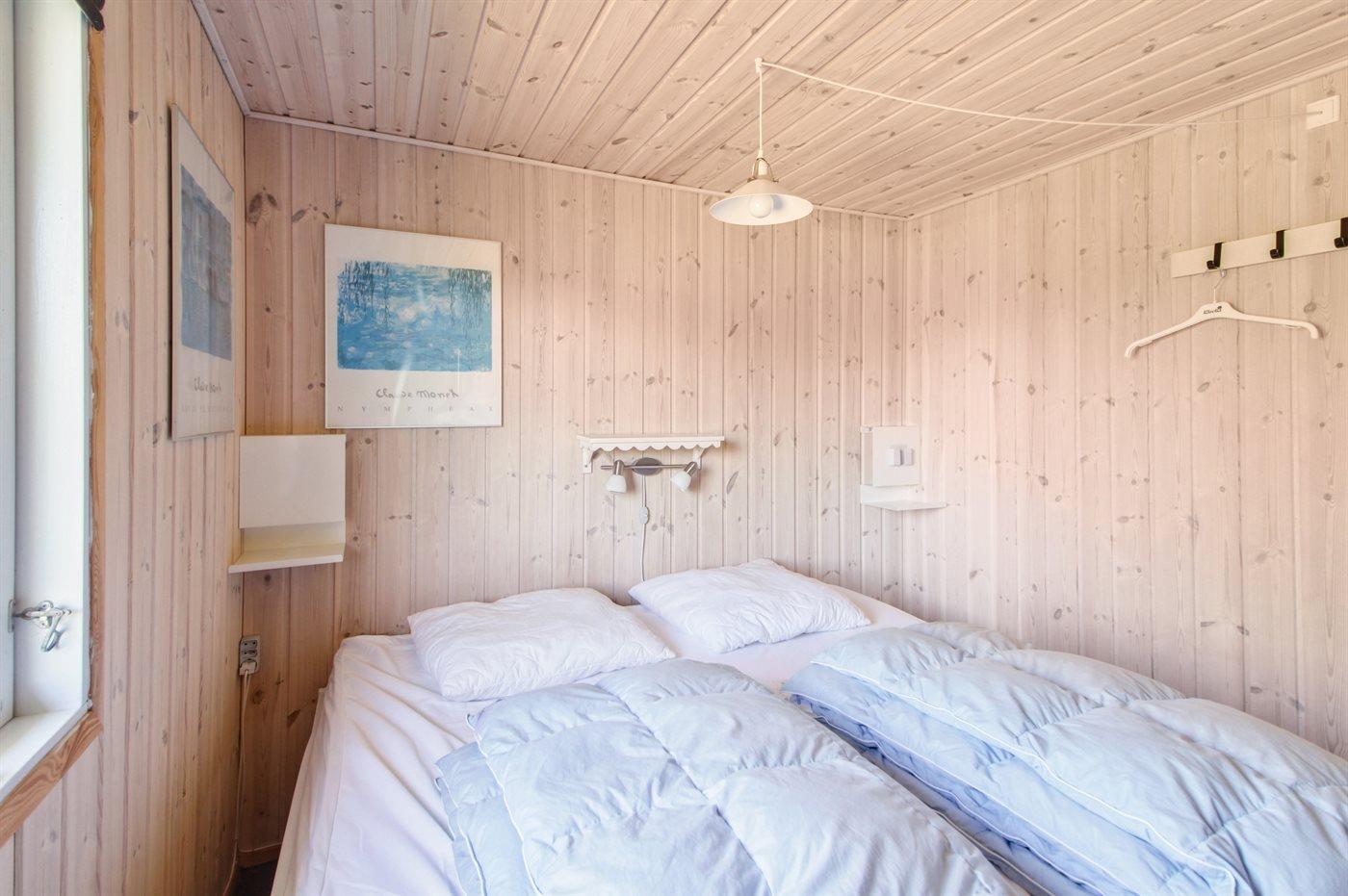 Der er i alt 3 soveværelser. Sovepladserne fordeler sig på: 2 sovepladser i dobbeltseng. 2 sovepladser i køjeseng. 2 sovepladser i sovesofa (dobbelt). Derudover er der 1 stk. barneseng.