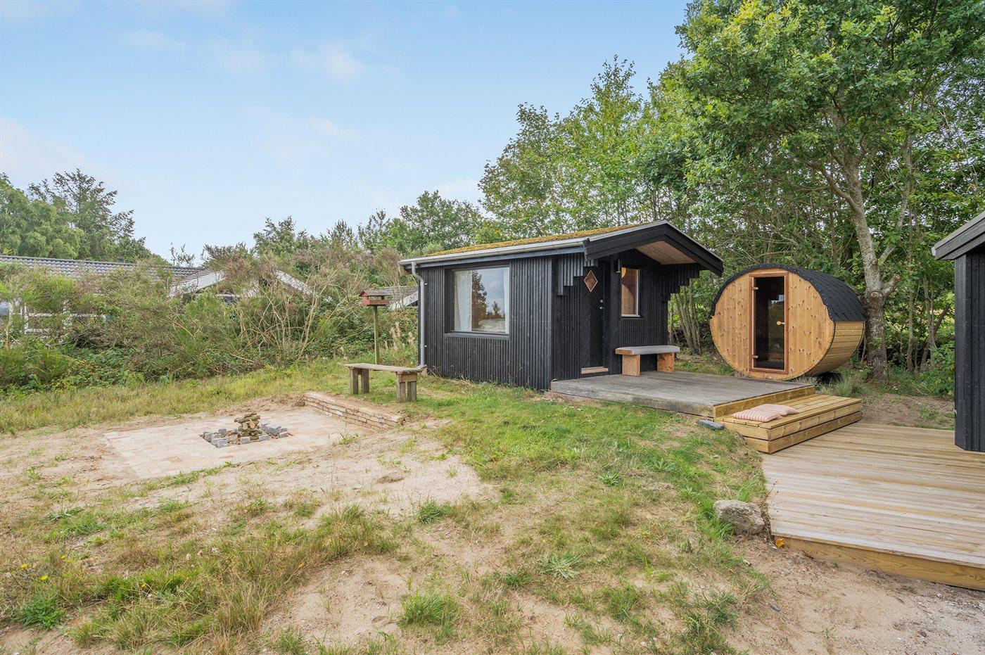 Fra såvel den dejlige terrasse, der også er delvist overdækket, som inde fra huset er der en rigtig fin udsigt over vandet. Sommerhuset er godt indrettet og der findes bl.a. en indendørs spa samt en udendørs sauna, hvorfra stilheden kan nydes.