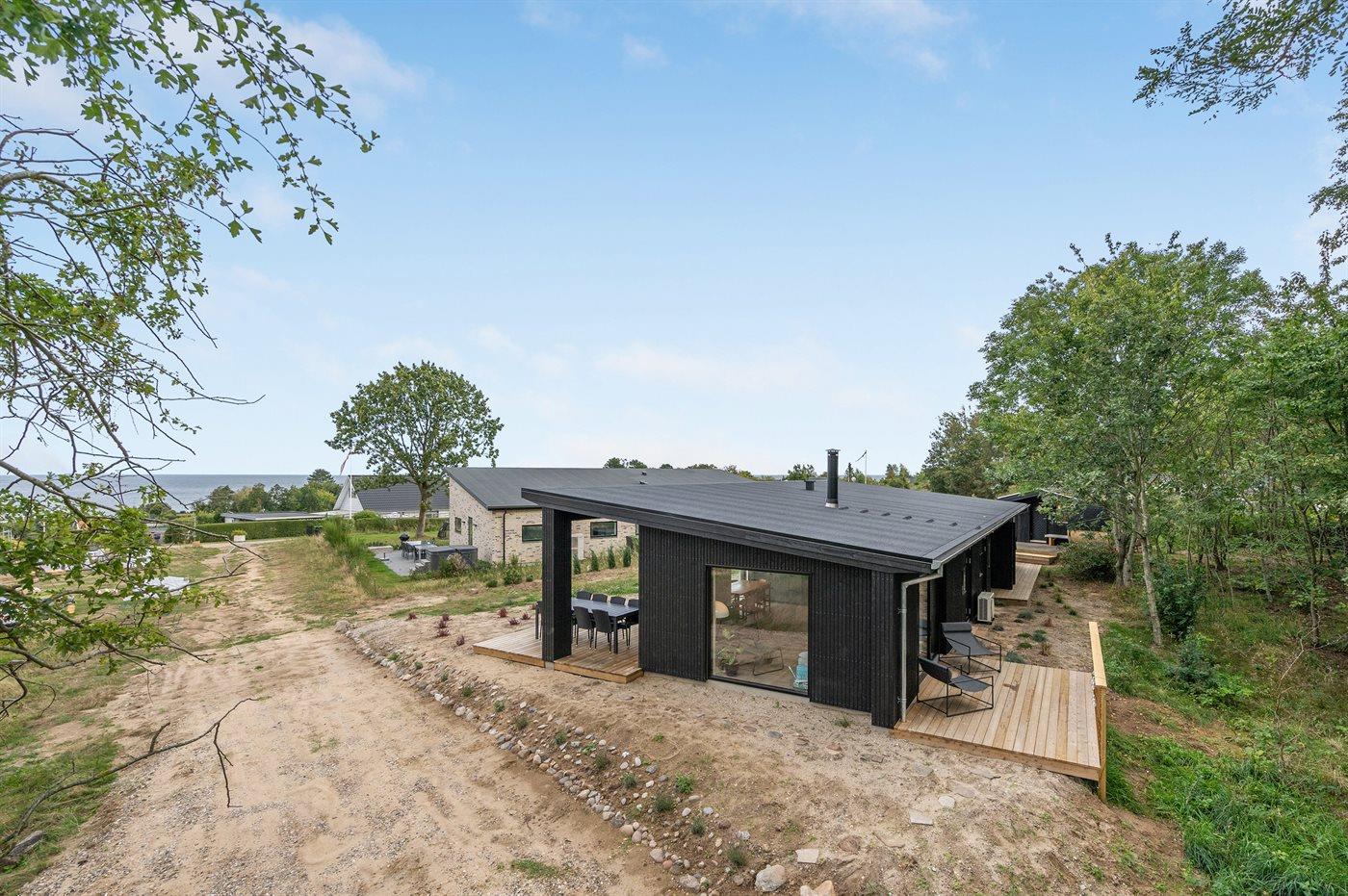 Nyopført sommerhus nær strand med spa, sauna og havudsigt i naturskønne omgivelser.
