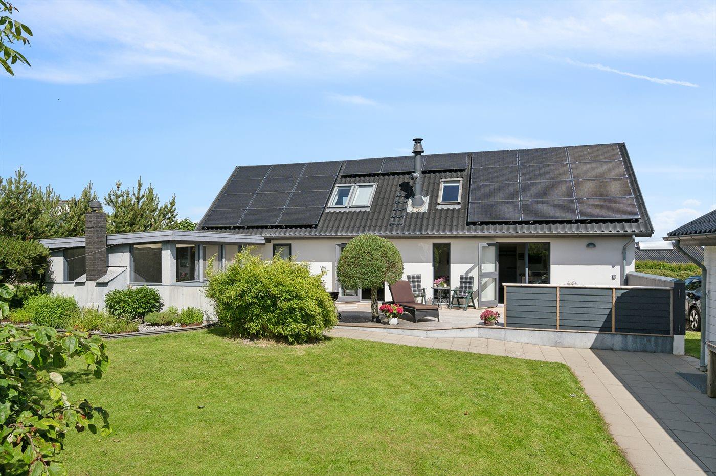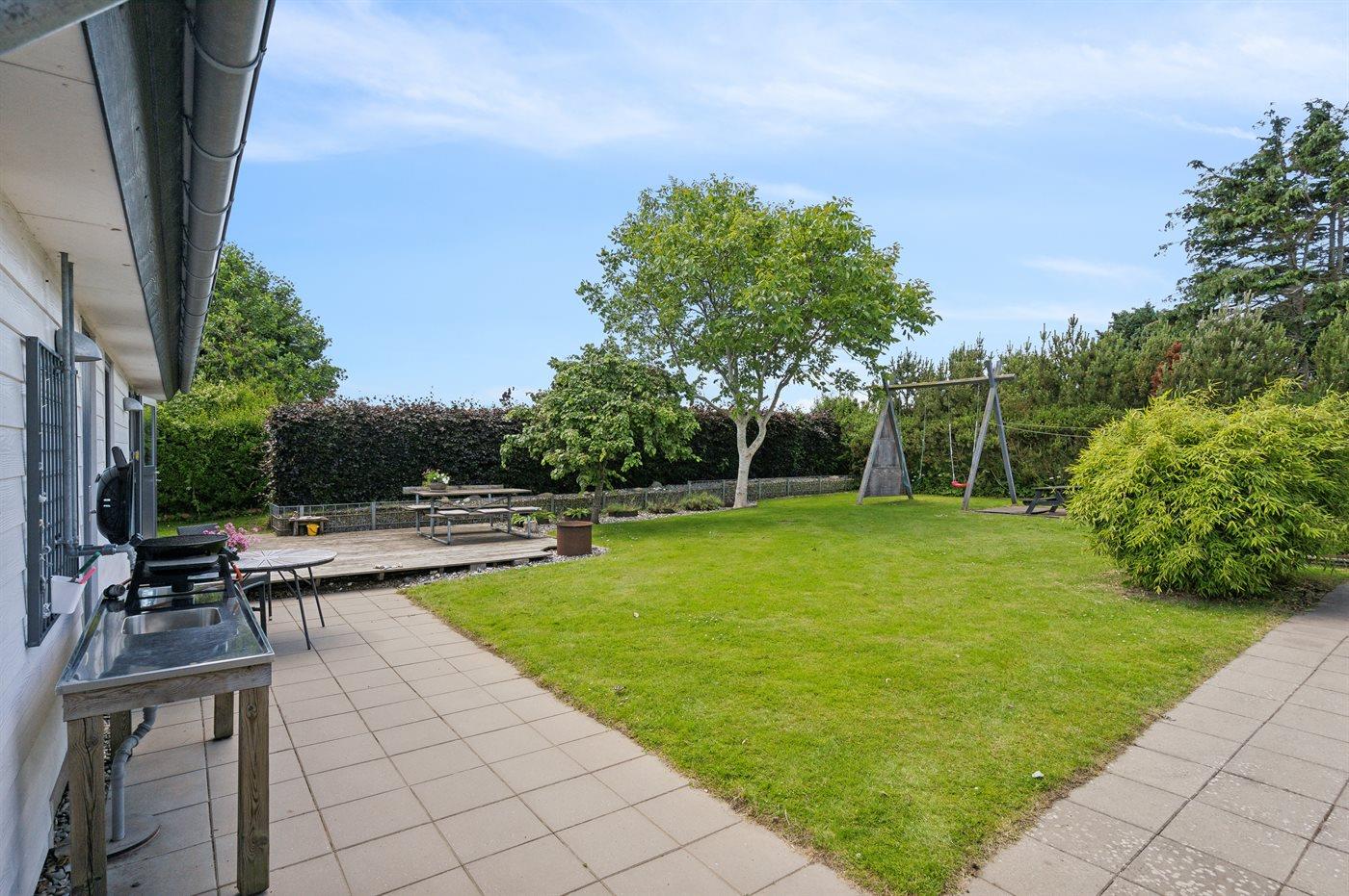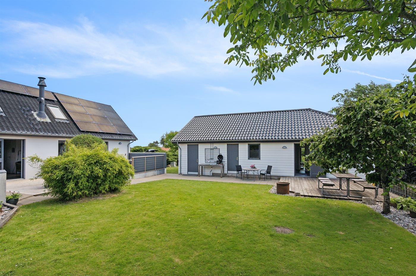 Den store og ugenerte terrasse er virkelig skøn og inviterer til mange timer i det fri - her er der altid mulighed for at finde en lækrog og nyde de skønne omgivelser. I forlængelse af den åbne terrasse findes en stor lukket terrasse, som i høj grad kan være med til at forlænge de skønne sommeraftener.