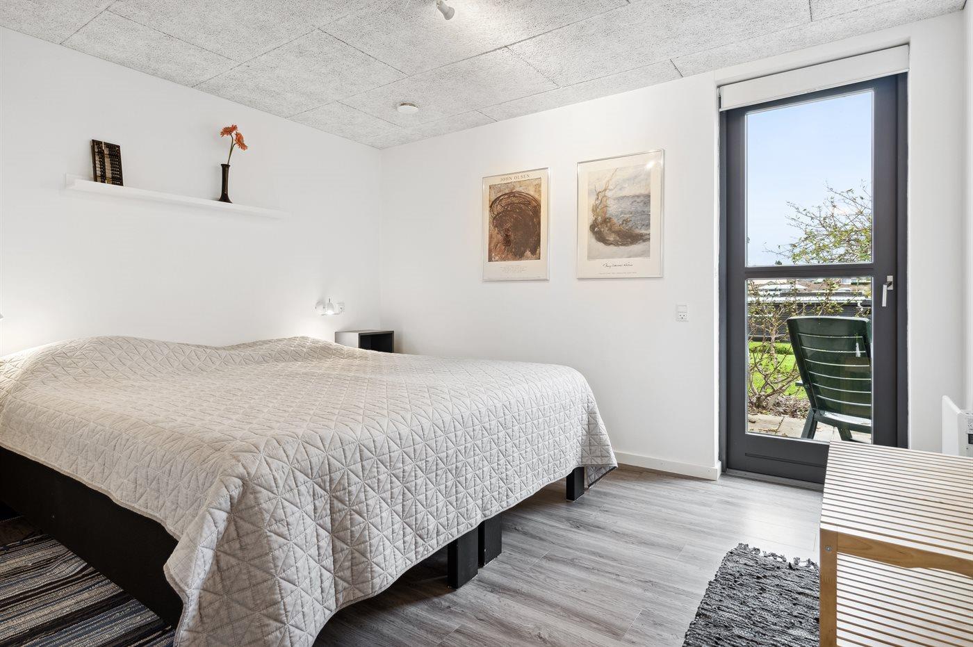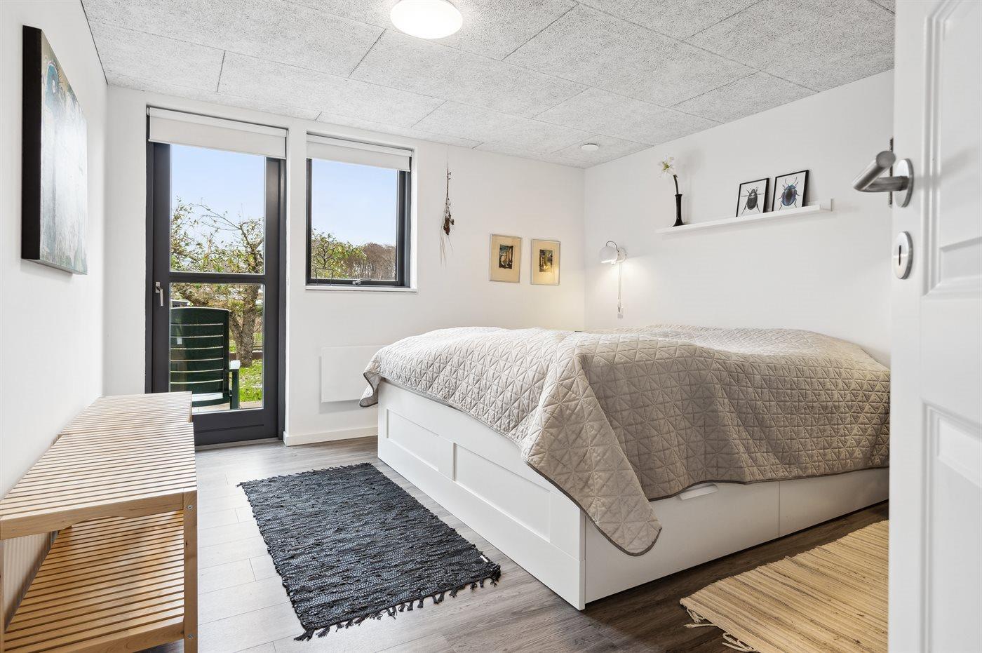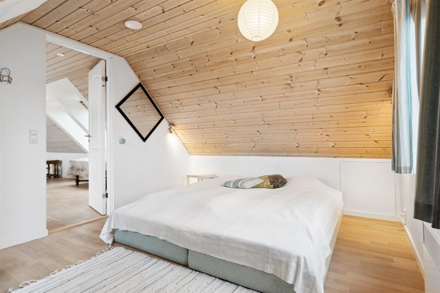 Der er i alt 5 soveværelser. Sovepladserne fordeler sig på: 8 sovepladser i dobbeltsenge. 2 sovepladser i enkeltsenge. 4 af disse sovepladser befinder sig i et anneks - fordelt på 2 soveværelser. Derudover er der 1 stk. barneseng.