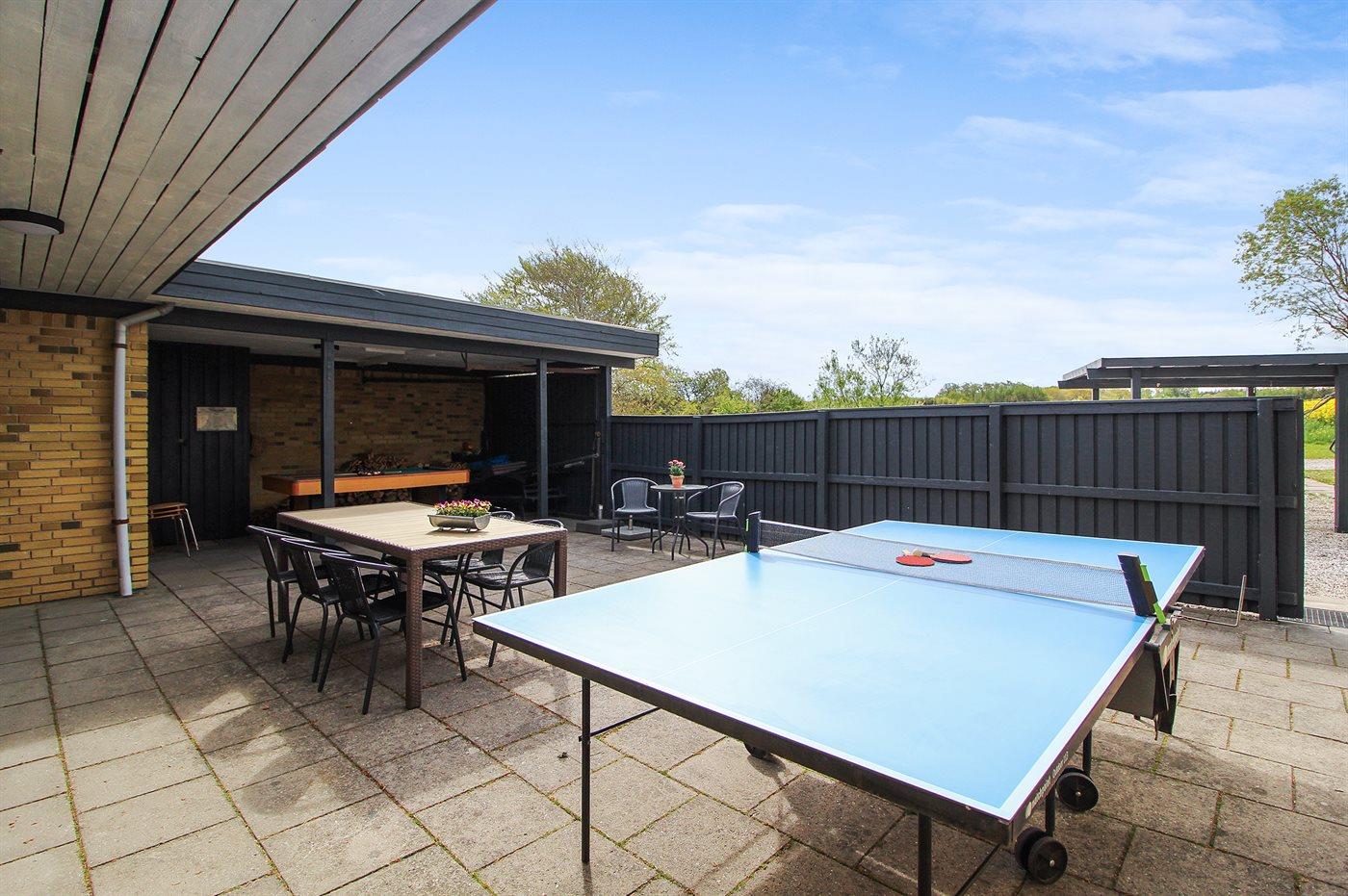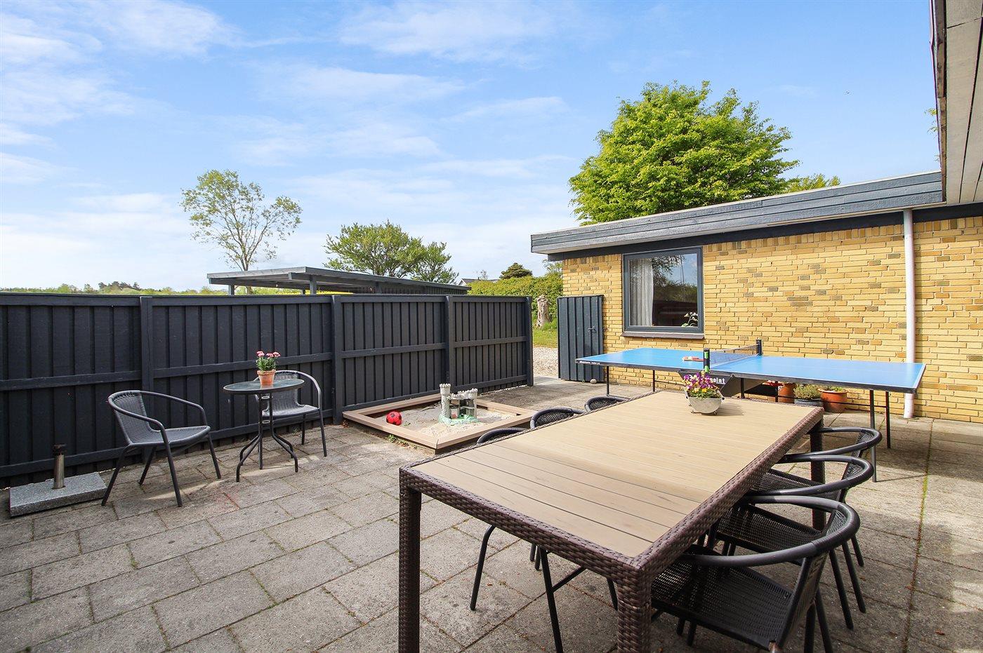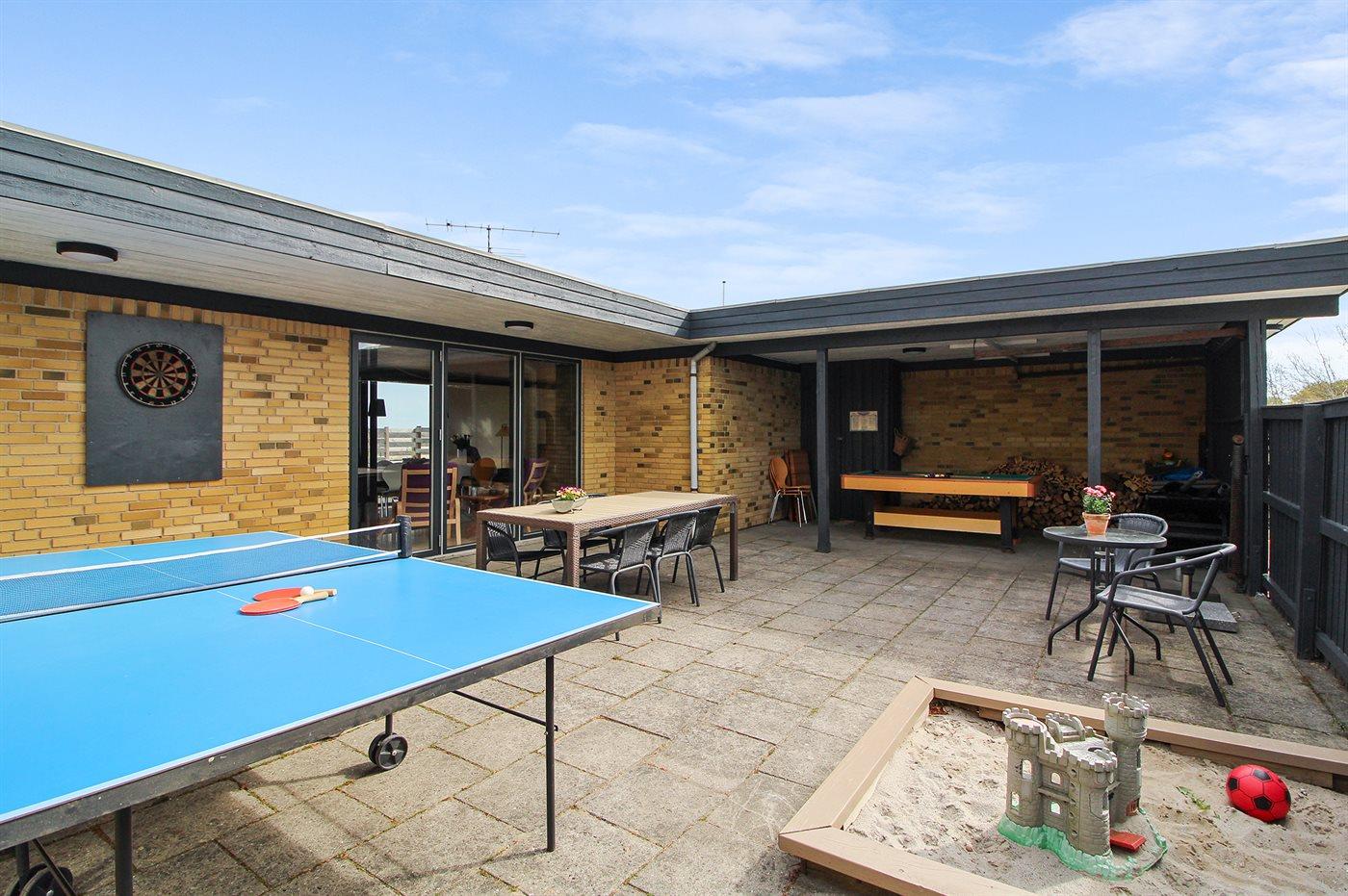 Ferieboligen er beliggende på en 1200 m² stor havegrund. Der er 100 m til havet. Nærmeste forretning er beliggende i en afstand af 3000 m. Til ferieboligen hører 68 m² terrasseareal. Desuden er der 20 m² overdækket terrasse. Udgang til solgård. Der er redskabsrum. Udendørs vask. Gynge. Sandkasse. Grill til rådighed. Der er carport til rådighed. Parkering ved ferieboligen.
