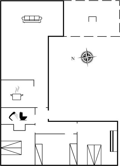 Der er i alt 3 soveværelser. Sovepladserne fordeler sig på: 4 sovepladser i dobbeltsenge. 2 sovepladser i enkeltsenge. 2 sovepladser i køjeseng. Derudover er der 1 stk. barneseng.