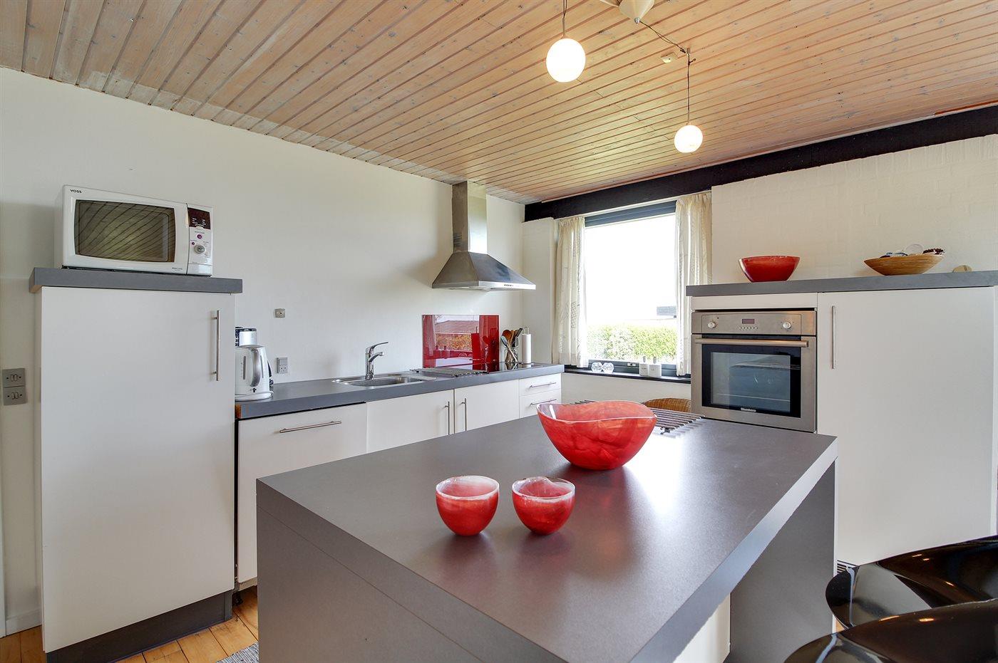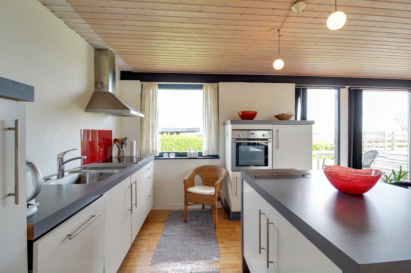 Køkkenet er udstyret med 1 køleskab. Der er 4 keramiske kogeplader, varmluftovn, mikrobølgeovn samt opvaskemaskine.