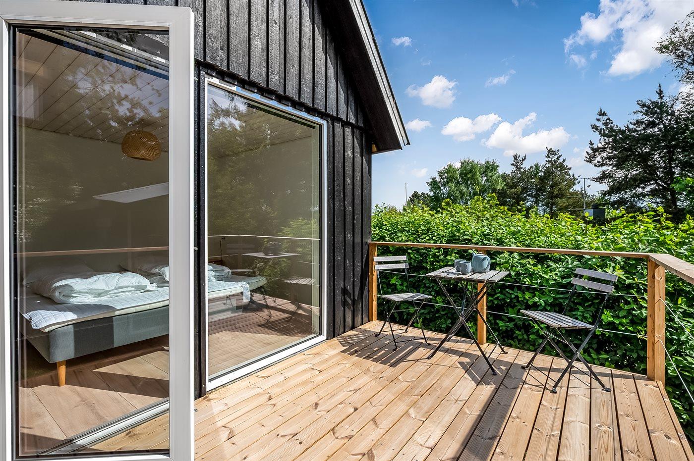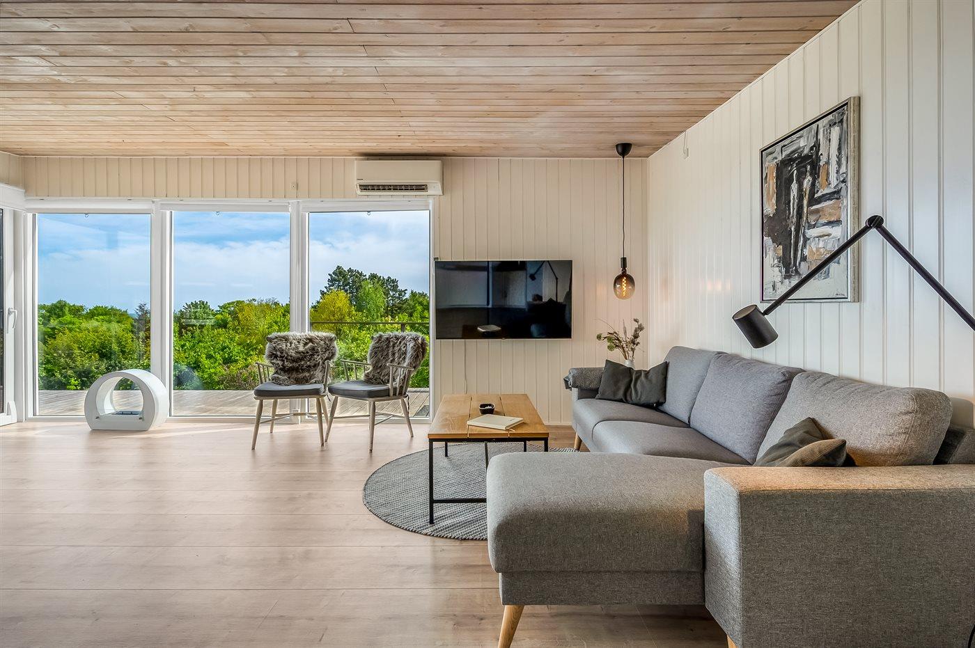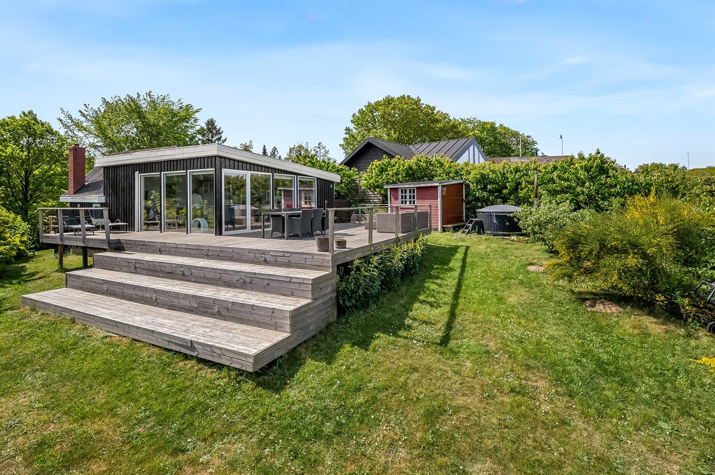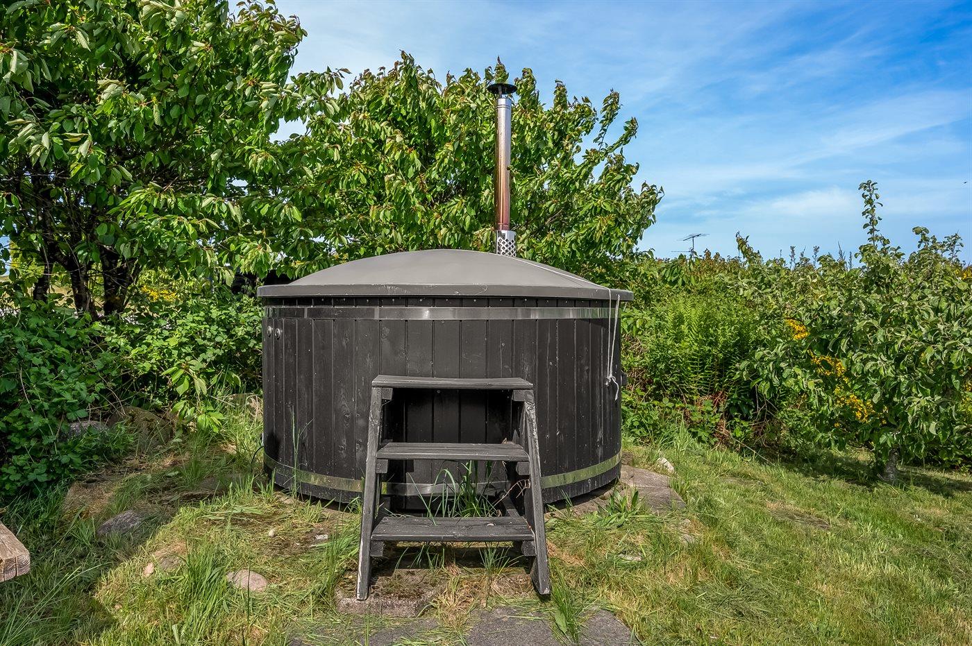 Der findes skønne terrassearealer på flere sider af huset, som inviterer til mange timer i det fri - her er der altid mulighed for at finde en lækrog og nyde de dejlige omgivelser. Her findes tilmed et skønt vildmarksbad med plads til hele familien, hvorfra den skønne udsigt over havet også kan nydes.