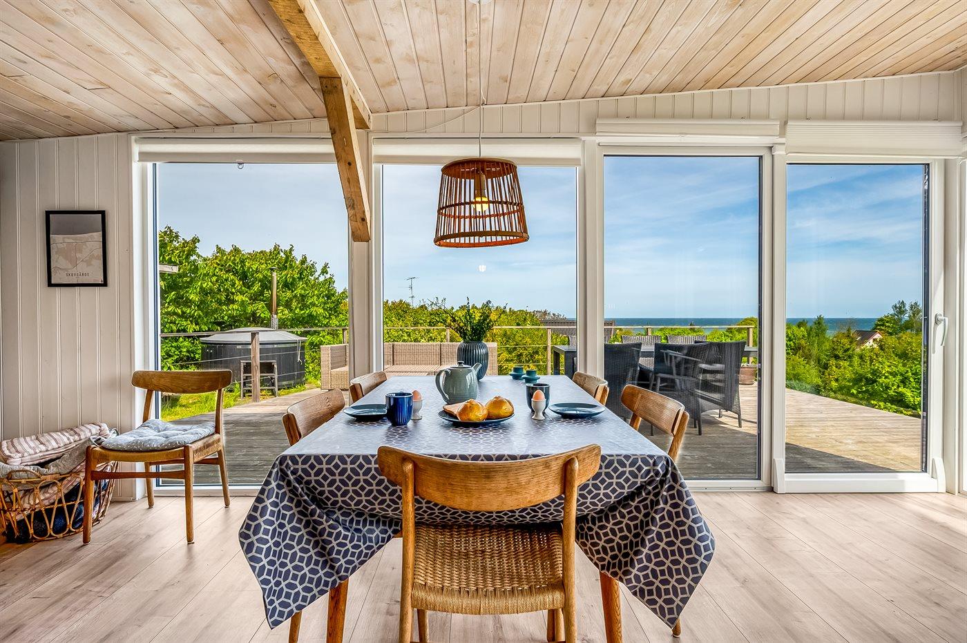 Sommerhuset er rummeligt og fremstår i fin stand, og løbende renoveret. I den ældre del af sommerhuset findes soveværelserne og badeværelset, og i den renoverede del findes et stort køkken/alrum, der ligger i åben forbindelse med stuen - her er virkelig tale om et skønt leverum. Havet kan ses både inde fra huset og fra grunden og ikke mindst fra den store og dejlige terrasse. I den forbindelse kommer den gode beliggenhed virkelig til sin ret, da man også fornemmer nærheden til havet.