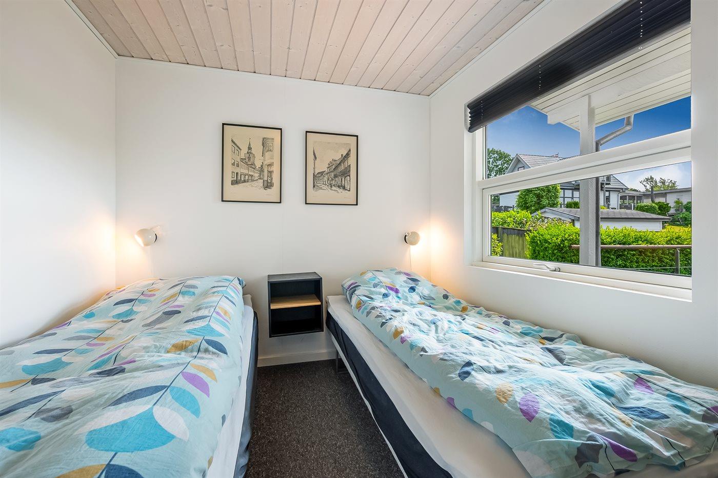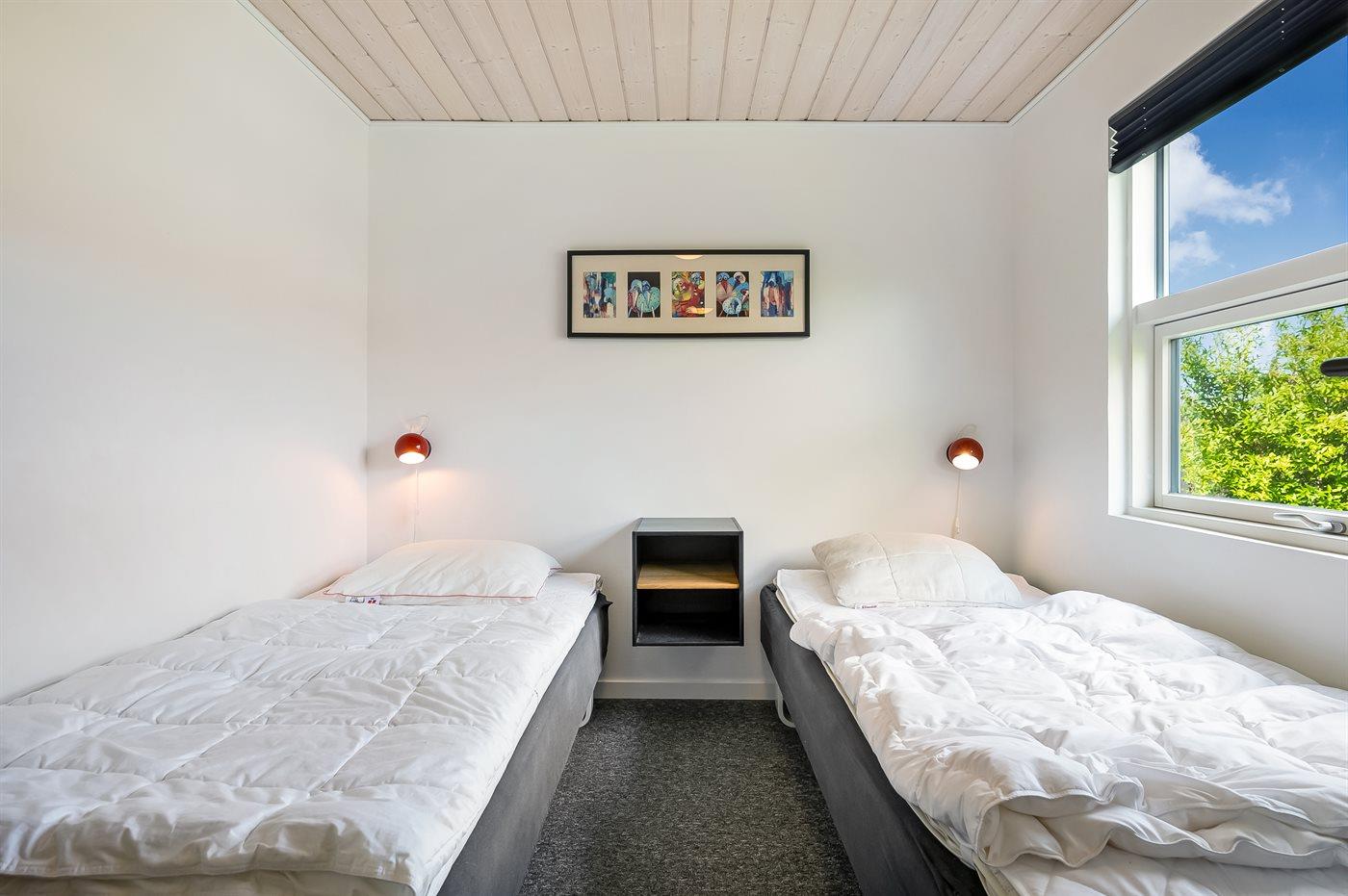 Der er i alt 3 soveværelser. Sovepladserne fordeler sig på: 2 sovepladser i dobbeltseng. 4 sovepladser i enkeltsenge.