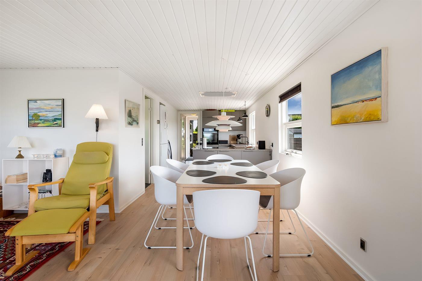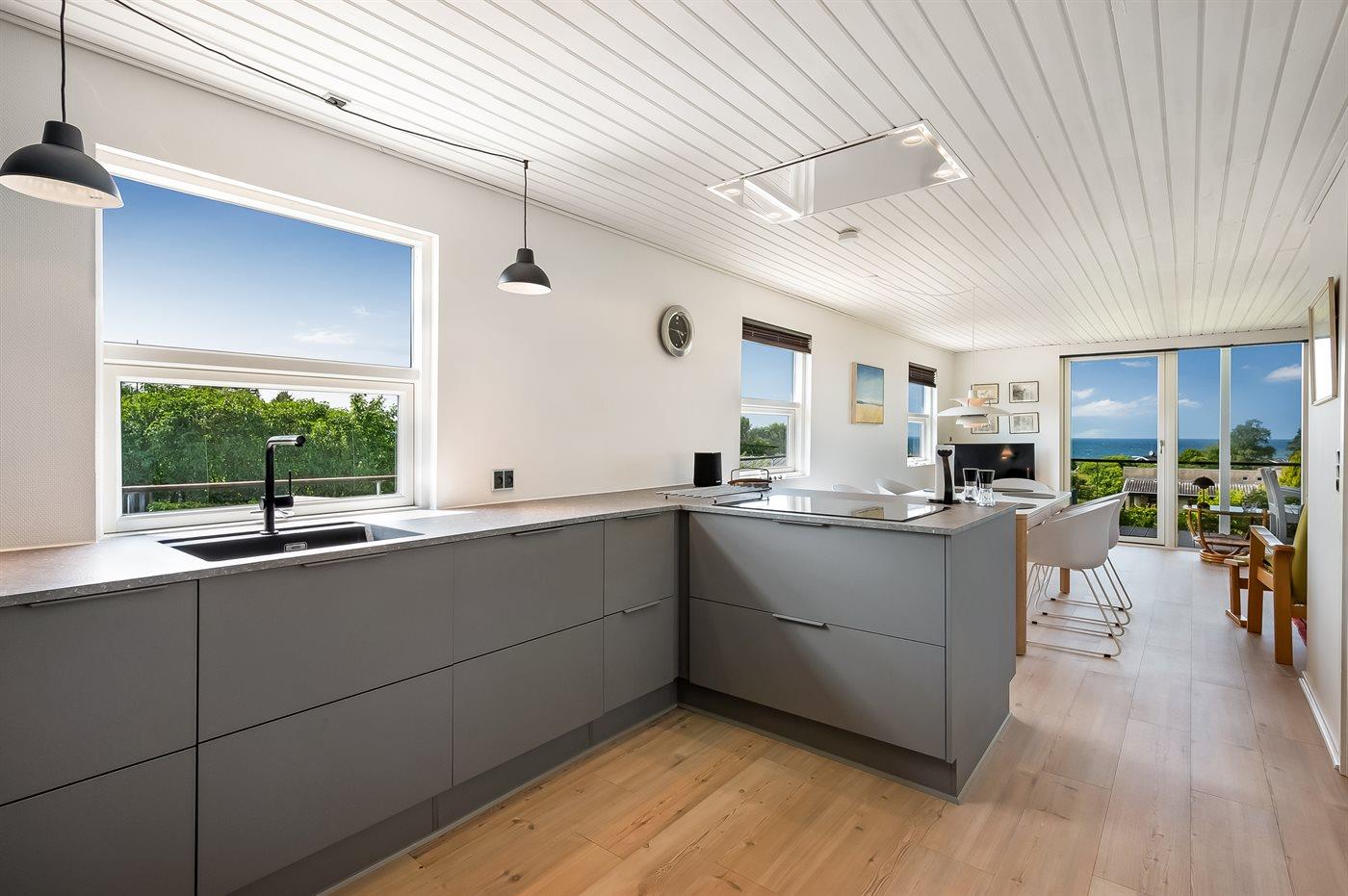 Sommerhuset er rummeligt og fremstår i rigtig fin stand og har gennemgået en modernisering i 2025 med bl.a. nyt køkken. Husets hjerte er netop det dejlige køkken/alrum, som ligger i åben forbindelse med stuen. Herfra kan den meget flotte udsigt over havet virkelig nydes. I den forbindelse kommer også den særdeles gode beliggenhed virkelig til sin ret, da man også fornemmer nærheden til havet.