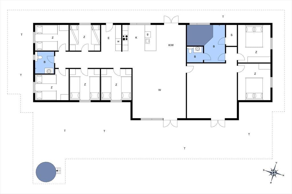Med hele 7 soveværelser er der rigeligt plads til alle – her finder I 6 værelser med dobbeltsenge, som også kan laves om til enkeltsenge, samt et værelse med 4 skønne køjesenge. Når lyset slukkes, og huset falder til ro, kan I glæde jer til endnu en dag fyldt med dejlige minder og samvær. Dette feriehus er mere end bare et sted at sove; det er rammen om jeres helt egen feriehistorie – skabt sammen med dem, I holder af.