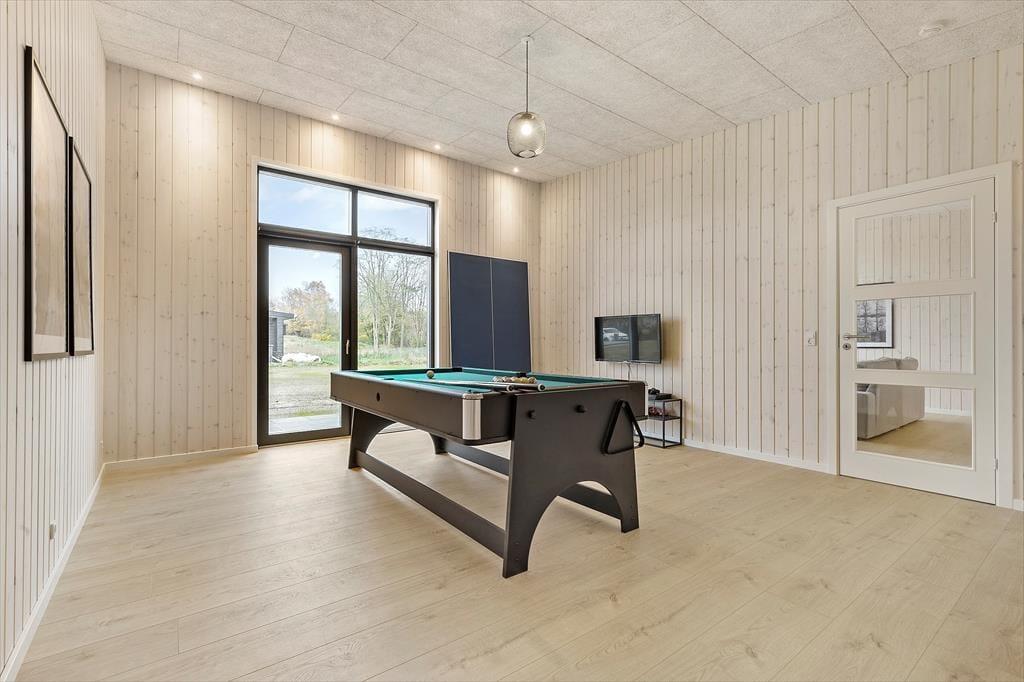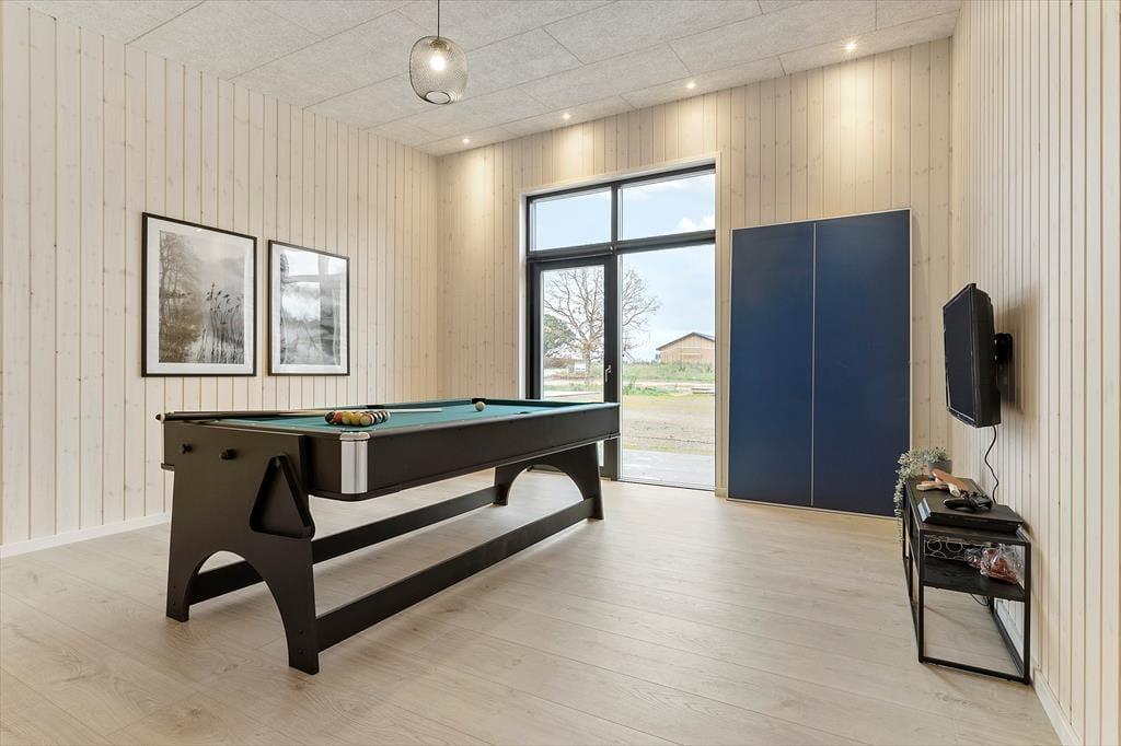 Efter en dag fuld af oplevelser – måske en tur til Djurs Sommerland eller et besøg på stranden – kommer I hjem og spreder jer ud i husets mange rum. Nogle kan tage en velfortjent pause i den varme sauna eller lade sig forkæle i spabadet, mens andre slår sig løs i aktivitetsrummet med udfordrende matcher og godt selskab - Her er både billard og bordtennis, så der er nok at se til.
