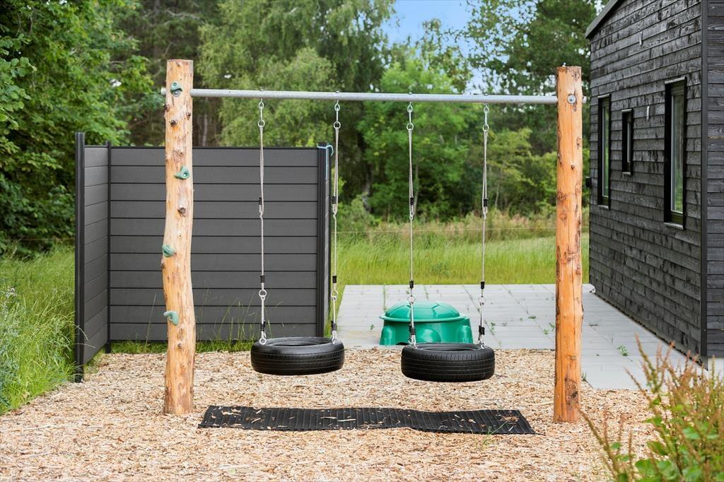 Den store græsplæne omkring huset indbyder til masser af udendørs leg og aktiviteter for både børn og voksne. Uanset om det er til en livlig omgang boldspil i sommersolen eller til sjov på en kølig vinterdag, er der masser af plads til at udfolde sig. Og til de mindste er der både gynge og sandkasse, som gør det nemt for hele familien at finde deres egen form for ferieglæde i naturen.