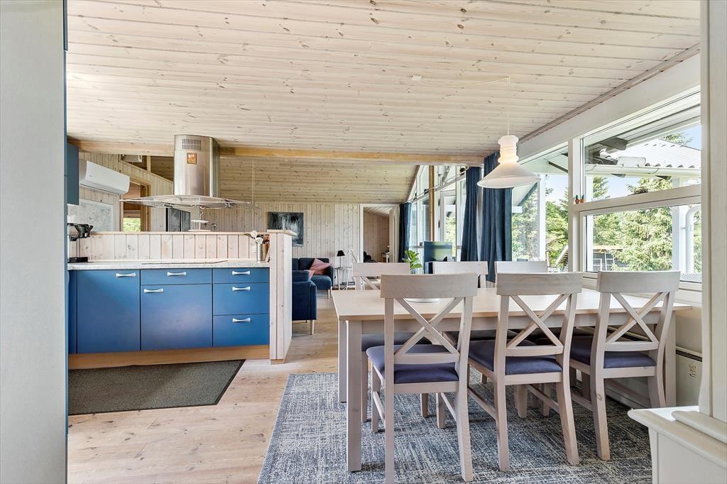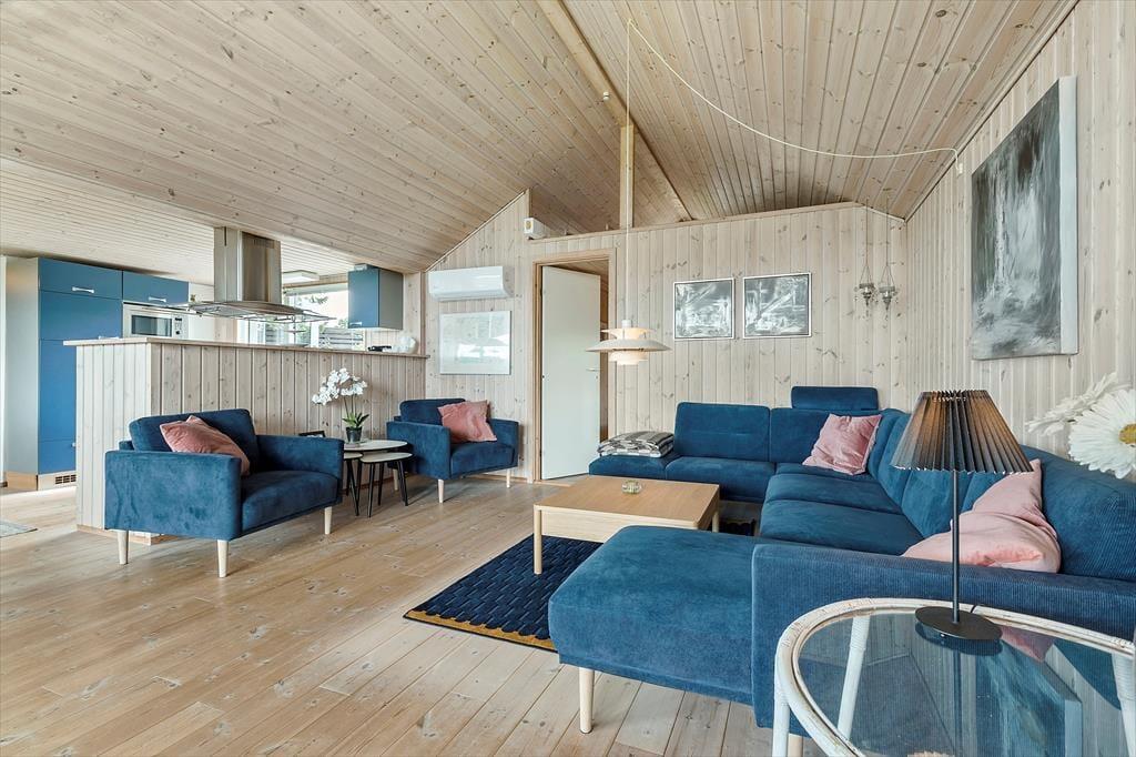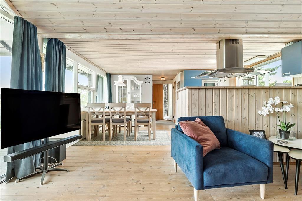 Dette velholdte sommerhus ligger smukt og fredfyldt og I vil straks mærke feriestemningen brede sig. Huset er løbende blevet sat i stand og senest udvidet med en flot tilbygning i 2022, så det nu står som det perfekte ramme om en skøn ferie med familie eller venner. Når I træder ind i huset, bliver I mødt af den store, lyse og velindrettede stue. Her kan I læne jer mageligt tilbage i de komfortable slængemøbler, tænde for tv’et og følge med i de store sportsbegivenheder, som du ikke vil gå glip af. Eller måske tage et spil med børnene eller blot hygge dig med en god bog. Fra det dejlige køkken kan du gøre kartofter og jordbær i stand, alt imens du snakker med den øvrige familie over halvmuren til stuen eller gæsterne i solgården. Måske familien spiller et sjovt spil ved spisebordet, mens du roligt forbereder maden og hyggen breder sig om jer alle. I sommerhusets badeværelse finder I en lækker 2-personers spa, hvor I rigtig kan nyde livet i de varme bobler. Badeværelset har også vaskemaskine og tørretumbler. Her er plads til i alt 8 personer, fordelt på tre gode soveværelser. Der er to soveværelser med behagelige dobbeltsenge og et kæmpe værelse med to solide køjesenge – perfekt til børnene eller dem, der elsker en hyggelig soveplads. Og bare rolig, køjesengene er ekstra lange (210 cm), så der er god plads til alle, store som små.