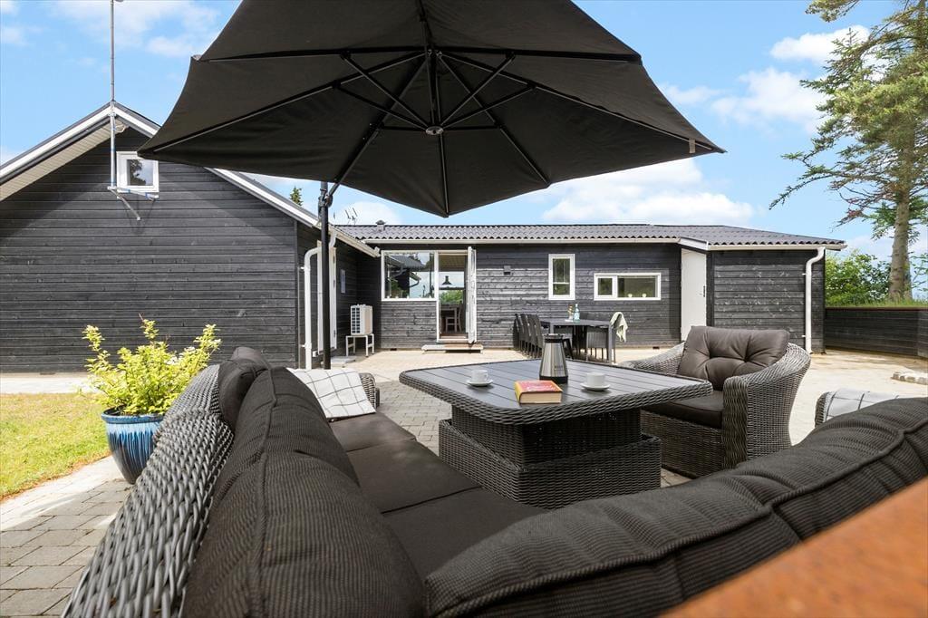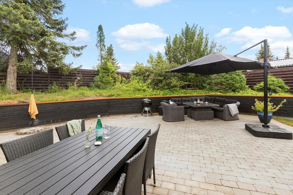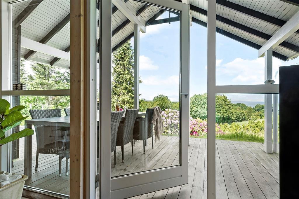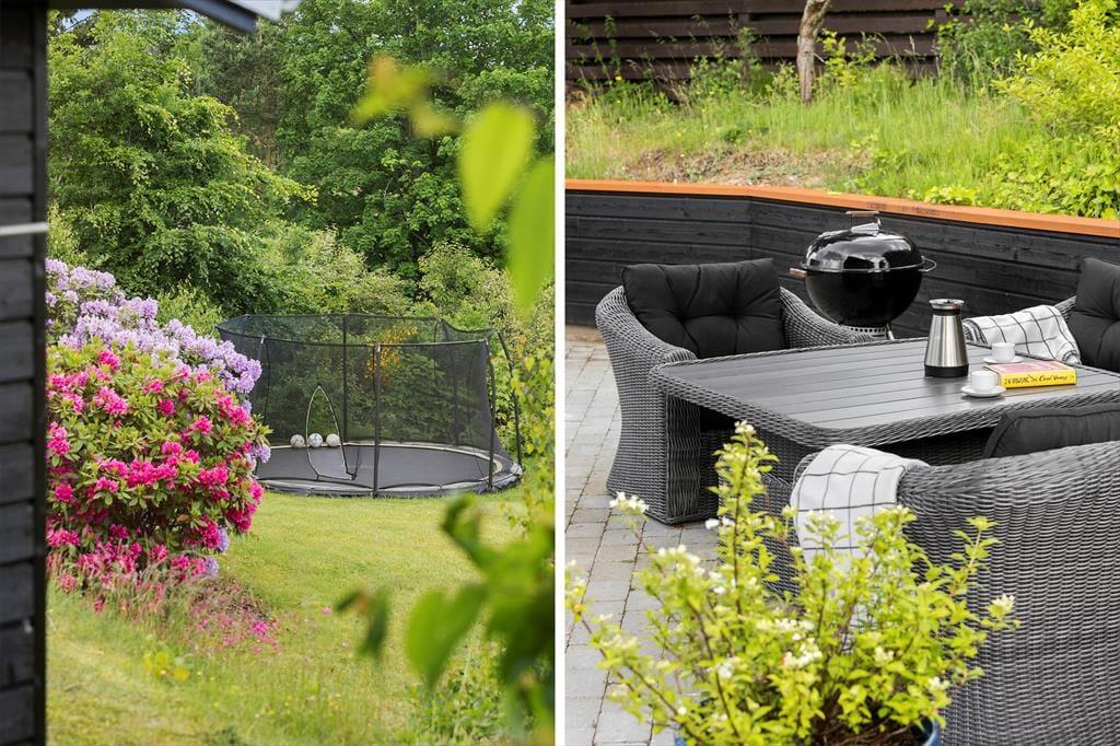Start dagen med morgenkaffen i den hyggelige solgård, der ligger i direkte forlængelse af køkkenet og som bader jer i morgensolens varme stråler. Som dagen skrider frem, kan I rykke over på den store, overdækkede terrasse, der nås direkte fra stuen. Her kan I sidde komfortabelt i de gode havemøbler og nyde maden fra grillen, lade blikket hvile i den smukke havudsigt, imens I kærligt holder øje med børnene, der lystigt hopper på trampolinen og leger på græsplænen.