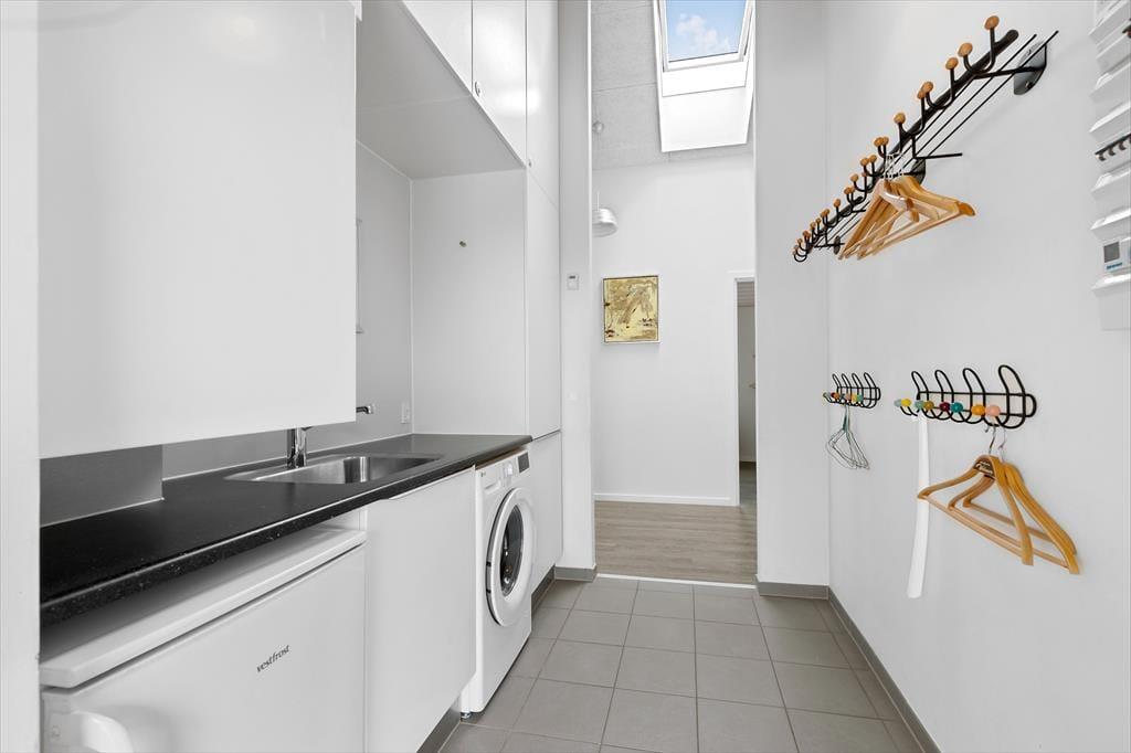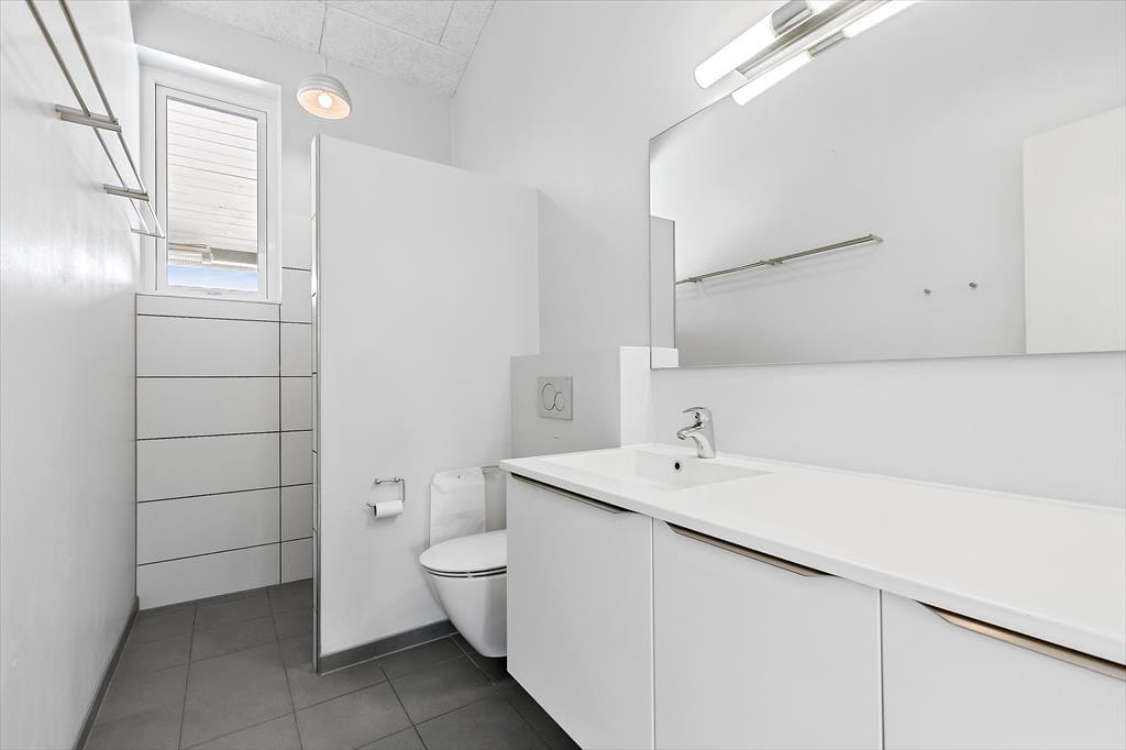 2 fine badeværelser samt bryggers med vaskemaskine og god plads til at køre en barnevogn i tørvejr.