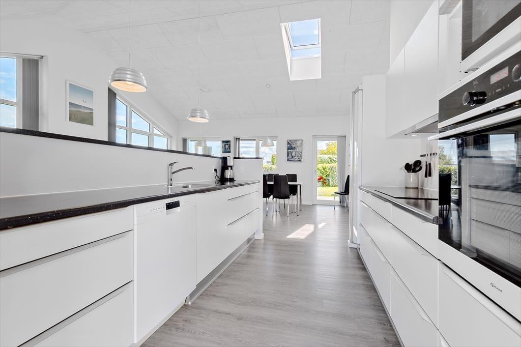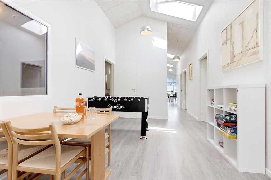 Huset er velindrettet, her er god akustik og der er brugt gode materialer, da huset blev bygget i 2017. Både hus og pool er lavenergi og der er tænkt over tingene. Du kommer til at nyde godt af den flotte udsigt over havet til den dejlige badestrand med det blafrende blå flag, når du har køkkentjansen, slapper af i sofaen eller spiser dejlig feriemad ved spisebordet. Feriemad, der er tilberedt på grillen eller i det veludstyrede køkken. Du kan også nyde saunaen, mens du holder øje med ungerne, der plasker lystigt i poolen. Sidst men ikke mindst har huset en hyggeligt aktivitetsrum med bordfodbold og tegnebord samt reol med spil og bøger.