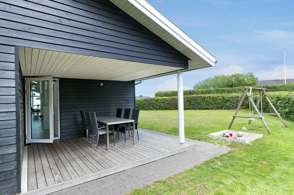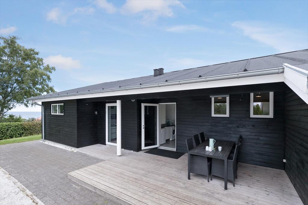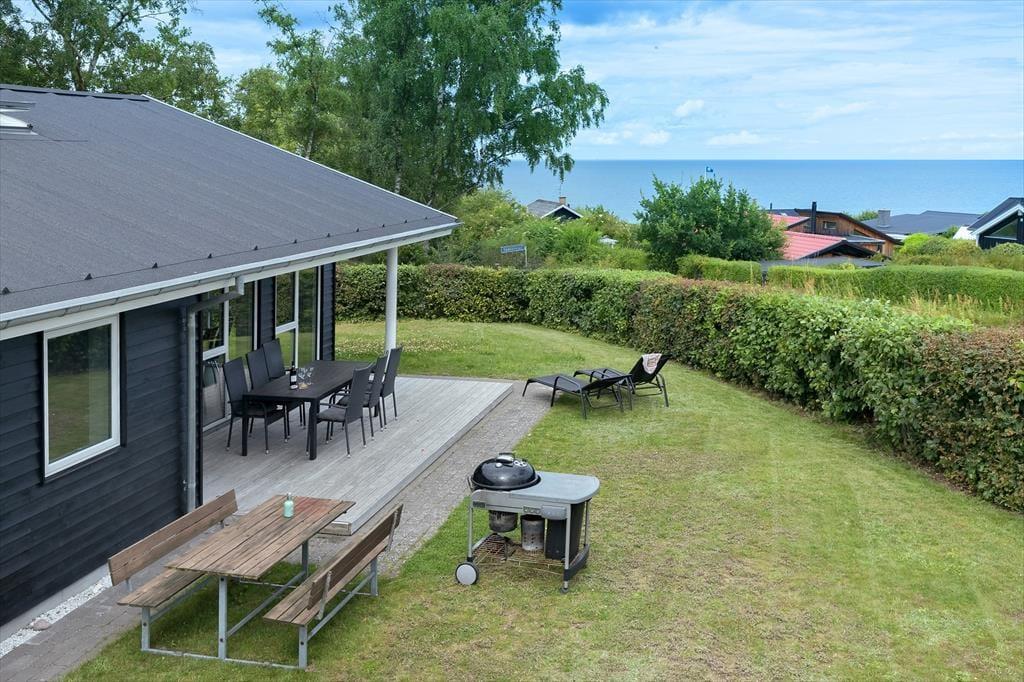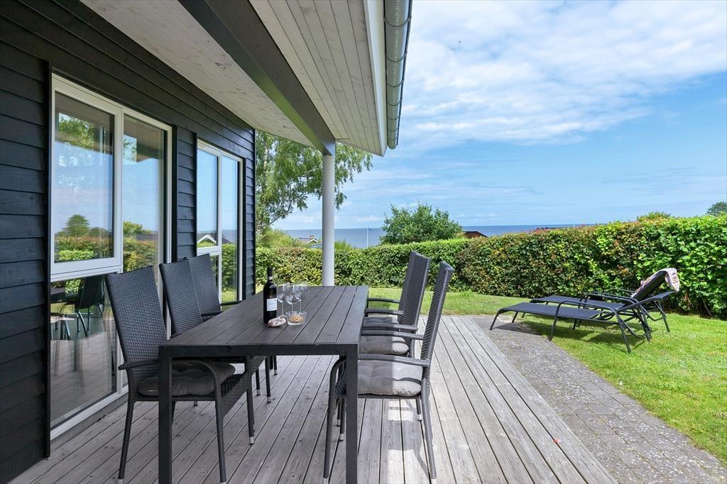 Nyd livet udenfor Herlig udsigtsgrund med hele 3 dejlige terrasser - Mod syd, vest og øst og helt eller delvist overdækkede, så du kan finde læ for både sol, regn og dug. Udsigten til havet kan nydes fra 2 af terrasserne og på den 3. kan du nyde en kop kaffe, mens ungerne leger i sandkassen eller morer sig i gyngerne. Afslut den dejlige feriedag med en familiedyst i rundbold eller anden aktivitet, der kræver god plads eller tag håndklædet under armen og gå til stranden og få en lækker dukkert.