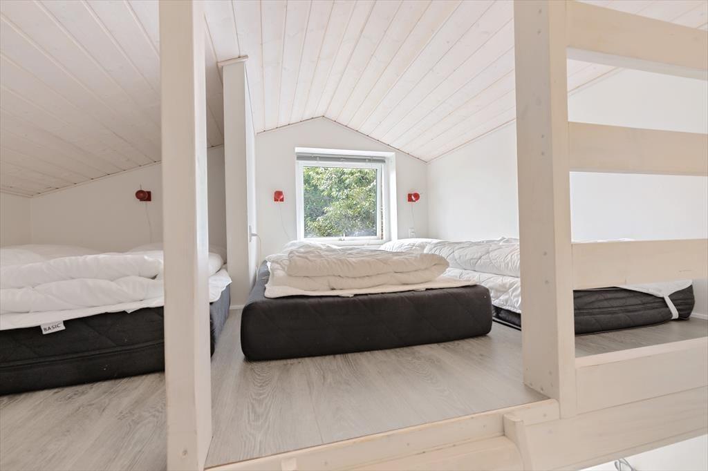 Sommerhuset, der er skabt til afslapning, har fem gode soveværelser – fire med dobbeltsenge og ét med 4 køjer samt hyggelig sovehems, hvor der er 4 madrasser. På grund af skråvægge i hemsen er de 2 yderste madrasser mest velegnede til børn.