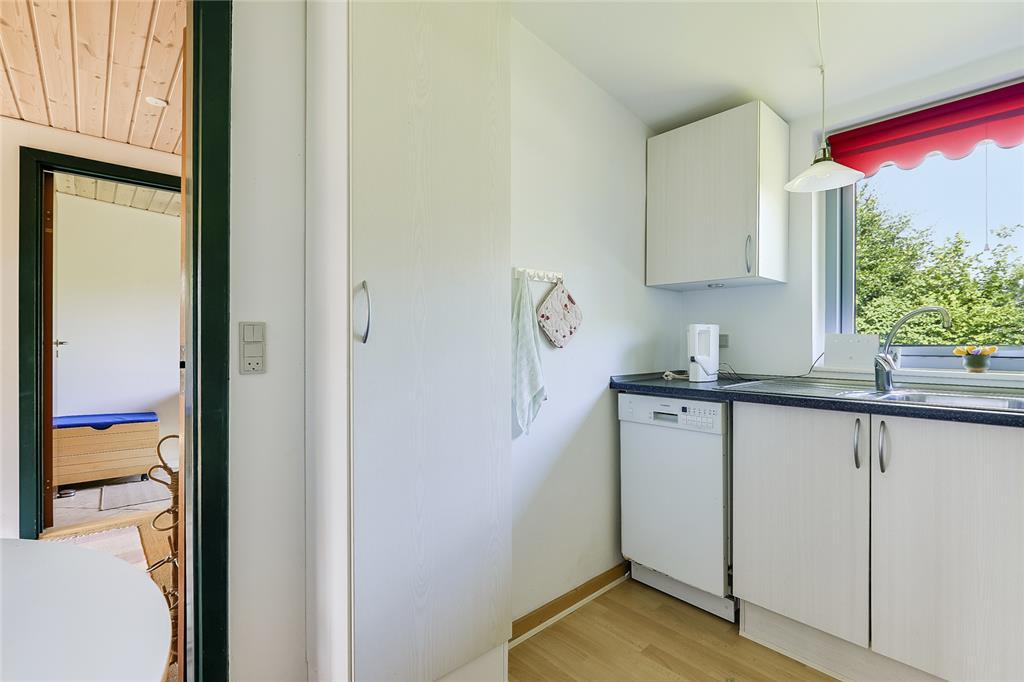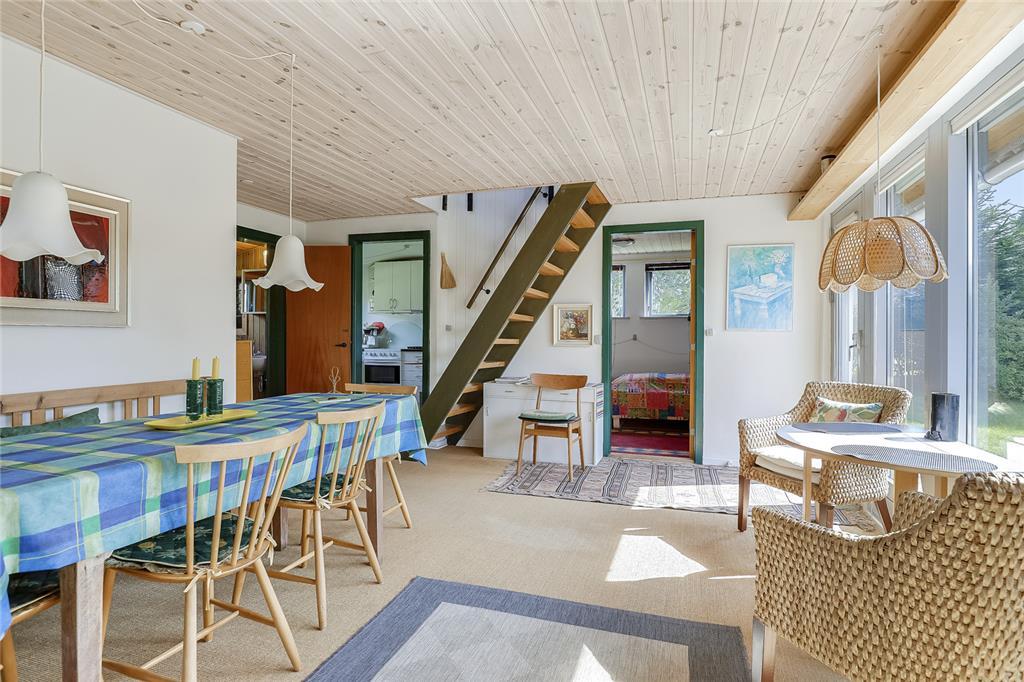 i et charmerende sommerhus fyldt med ferieminder, hvor barndommens somre vækkes til live og hvor tiden synes at stå stille. Sommerhuset er i to plan og emmer af den klassiske danske sommerhusstemning, der var en gang. Her er det let at forestille sig lange, langsomme dage med brætspil ved spisebordet og lyden af bølger i det fjerne.
