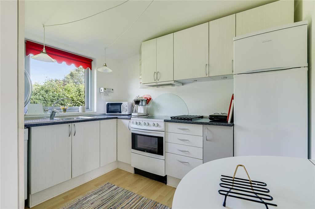 Den hyggelige stue er indrettet med møbler, der indbyder til afslapning med en god bog eller en kop kaffe i hånden. Det lyse køkken er fint og hyggeligt og du kan glæde dig til at forkæle familien med hjemmebag og nyde duften af nybagte boller til lyden af kaffemaskinens snurren. Badeværelset er pænt og funktionelt, og de to soveværelser – det ene med en dobbeltseng, det andet med to enkeltsenge.
