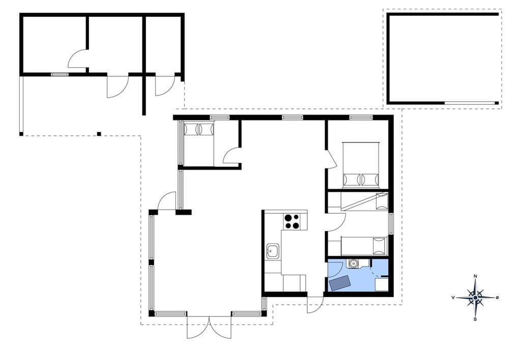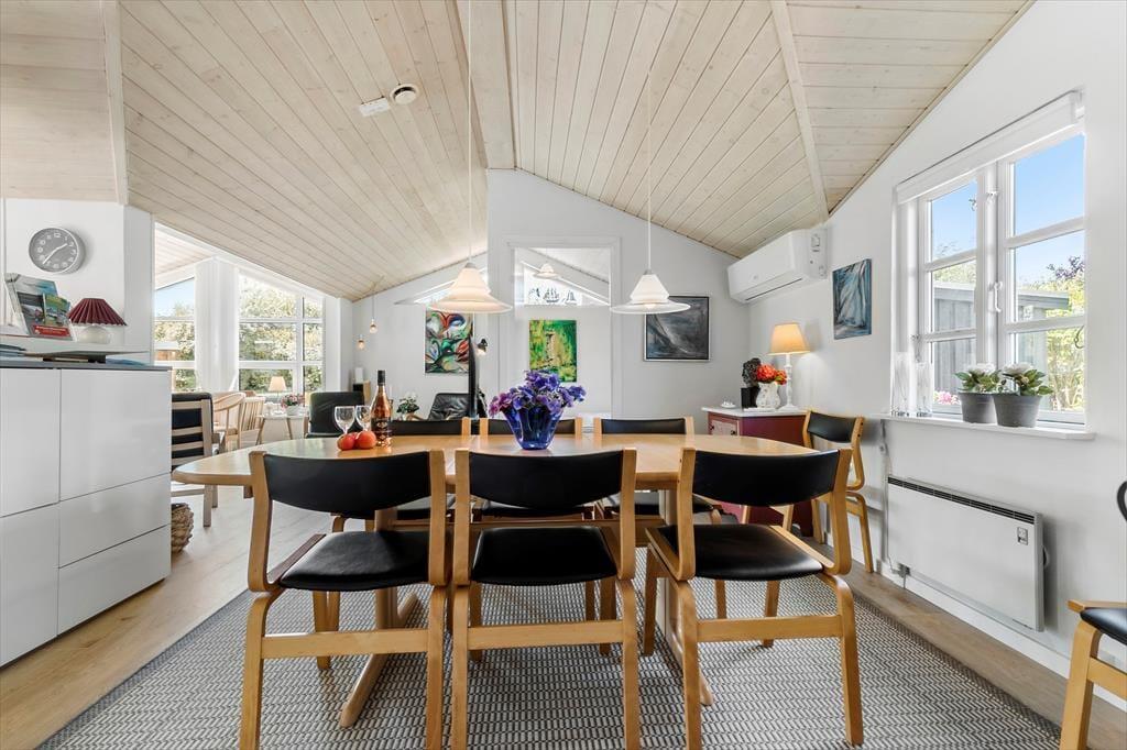 Forestil dig en sommermorgen. Du står op og går ud i den lyse stue, hvor solens første stråler kærtegner rummet. Du sætter kaffe over i det åbne og indbydende køkken og venter på, at familien vågner. Køkkenet har alt det du behøver for at lave lækre feriemåltider. Måske har du planer om at stege pandekager til morgenmad, eller måske står den på grillmad om aftenen – alt sammen nemt og bekvemt. Den knitrende brændeovn i stuen gør det hyggeligt, når aftenen falder på, og du nyder lyden af latter og samtaler, der fylder rummet. Efter en lang dag med eventyr kan hygge dig i det dejlige badeværelse, tage et varmt brusebad og nyde, at du har god tid og varmen i gulvet. Når det er tid til at finde ro, kan du vælge mellem tre skønne soveværelser. Måske vælger du at krybe op i den store dobbeltseng, eller måske vil du dele det hyggelige værelse med en køjeseng med børnene. Uanset hvad, er her plads til ro og hvile.