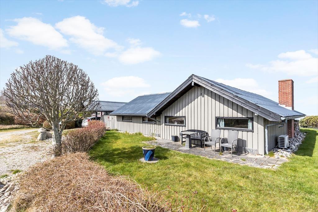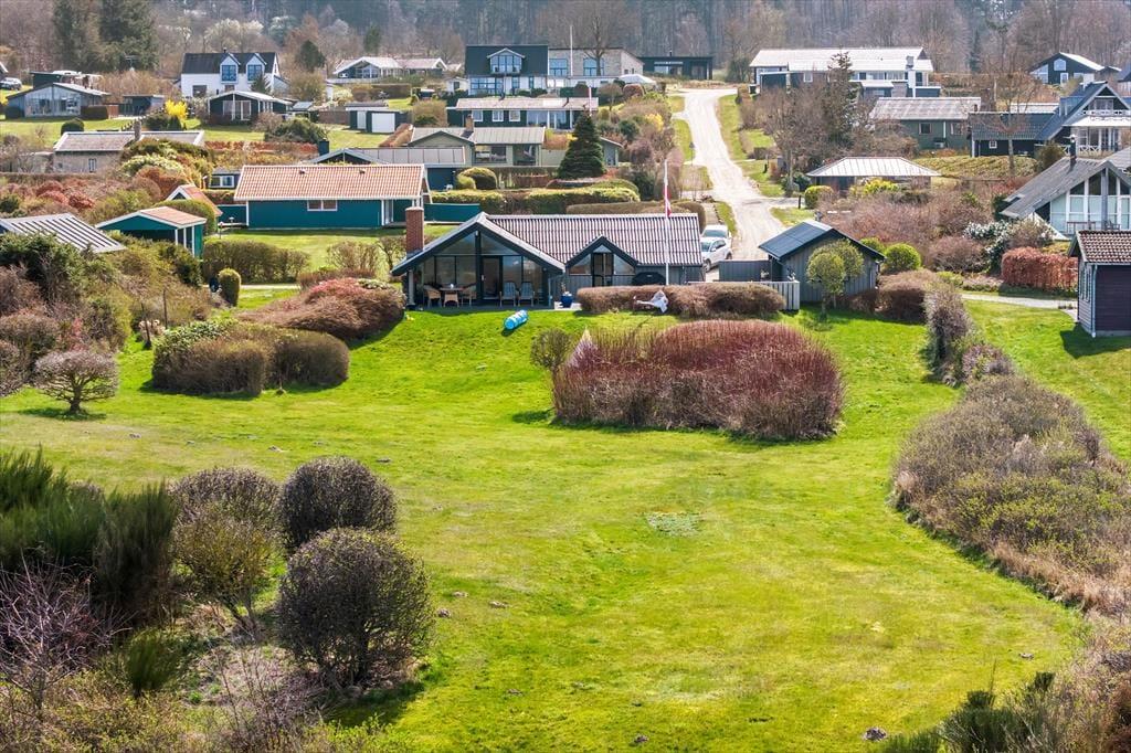 Sommerhuset ligger på en kæmpe strandgrund på næsten 3.500 m² – en sjælden perle, hvor naturen får lov at fylde, og ferien får plads til at ånde. Lav, gammel bevoksning med buske sætter stemningen og giver grunden et levende, naturligt udtryk – uden at skygge for den betagende udsigt over havet.
