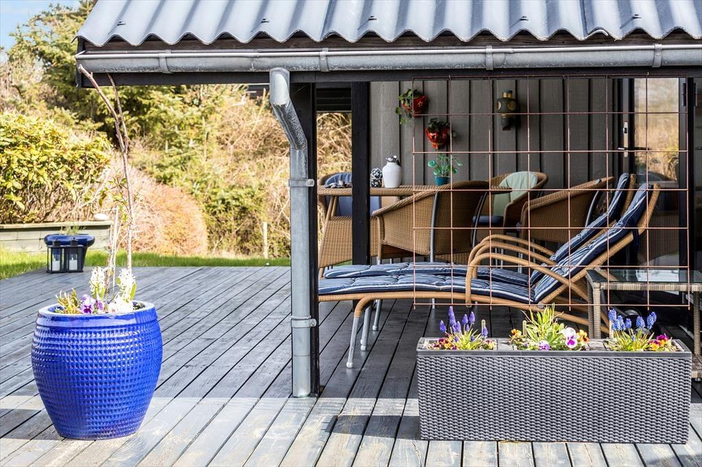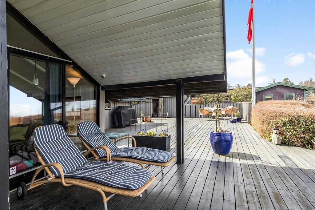 Terrassen er stor – rigtig stor – og byder på både solrige hjørner og en dejlig overdækket del, hvor I kan nyde morgenmaden i ly for dug på dugfriske morgener, eller trække jer tilbage med en god bog, selv når skyerne glider forbi. Her kan hele familien samles til grillmiddage, kortspil og de der lange, varme sommeraftener, hvor tiden står stille.